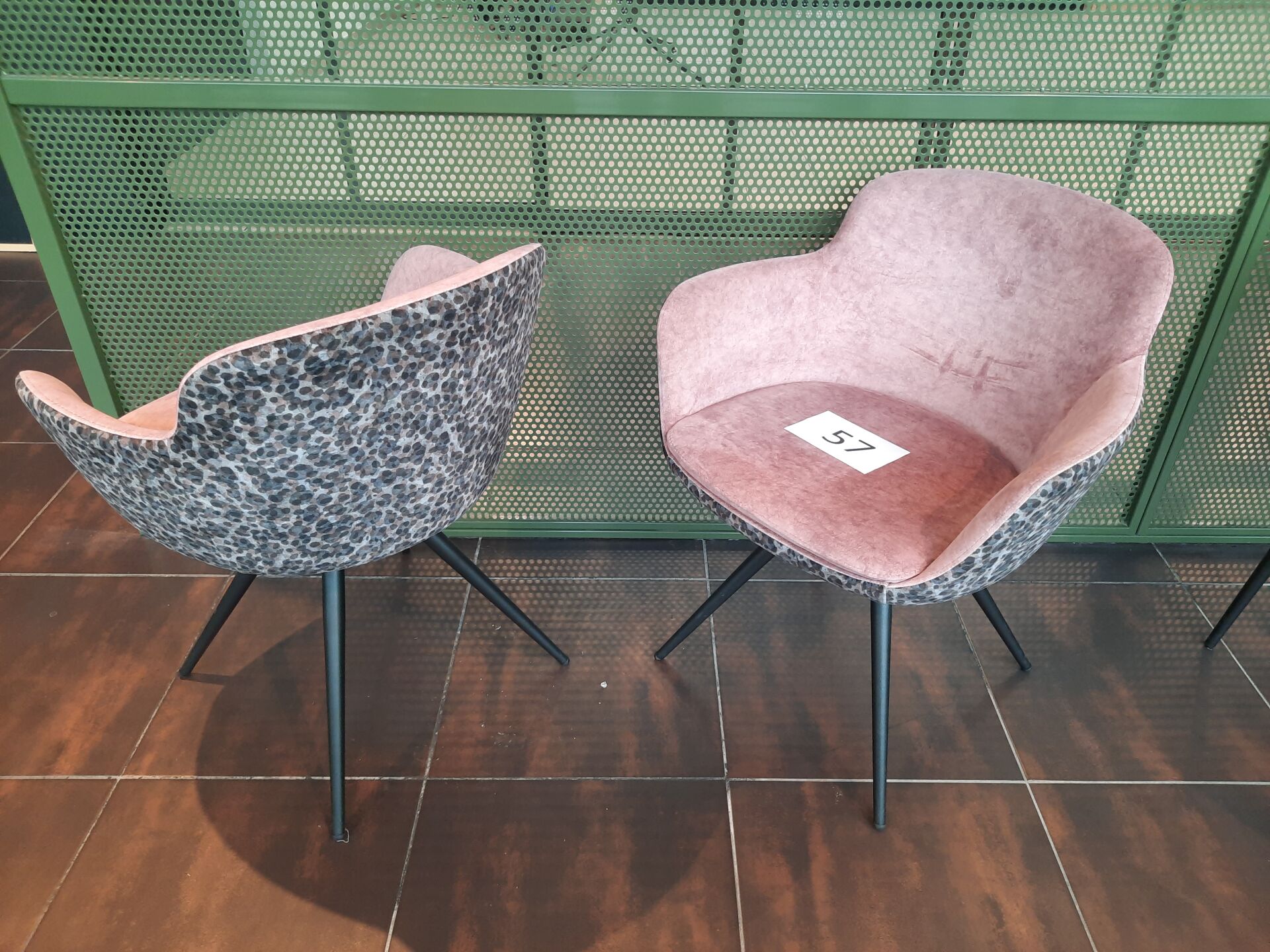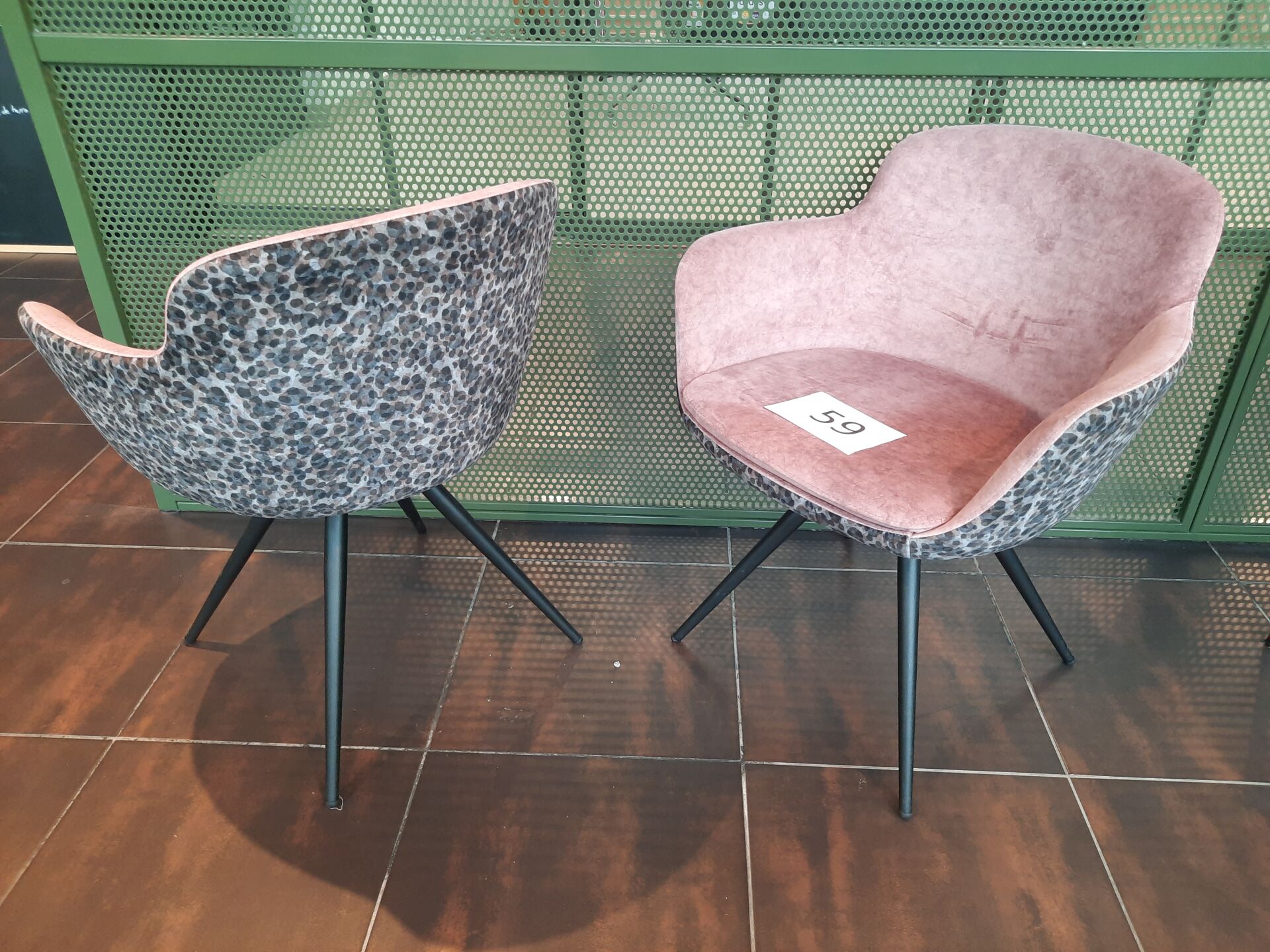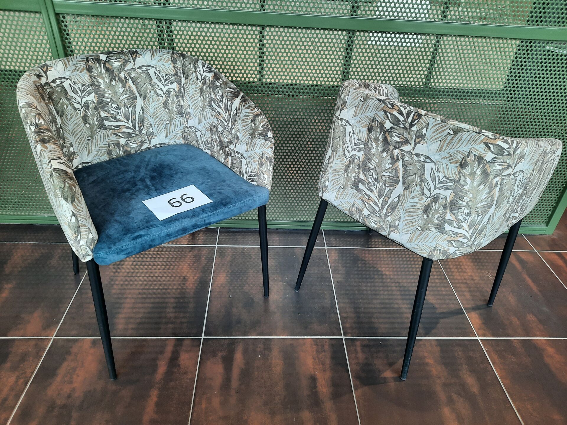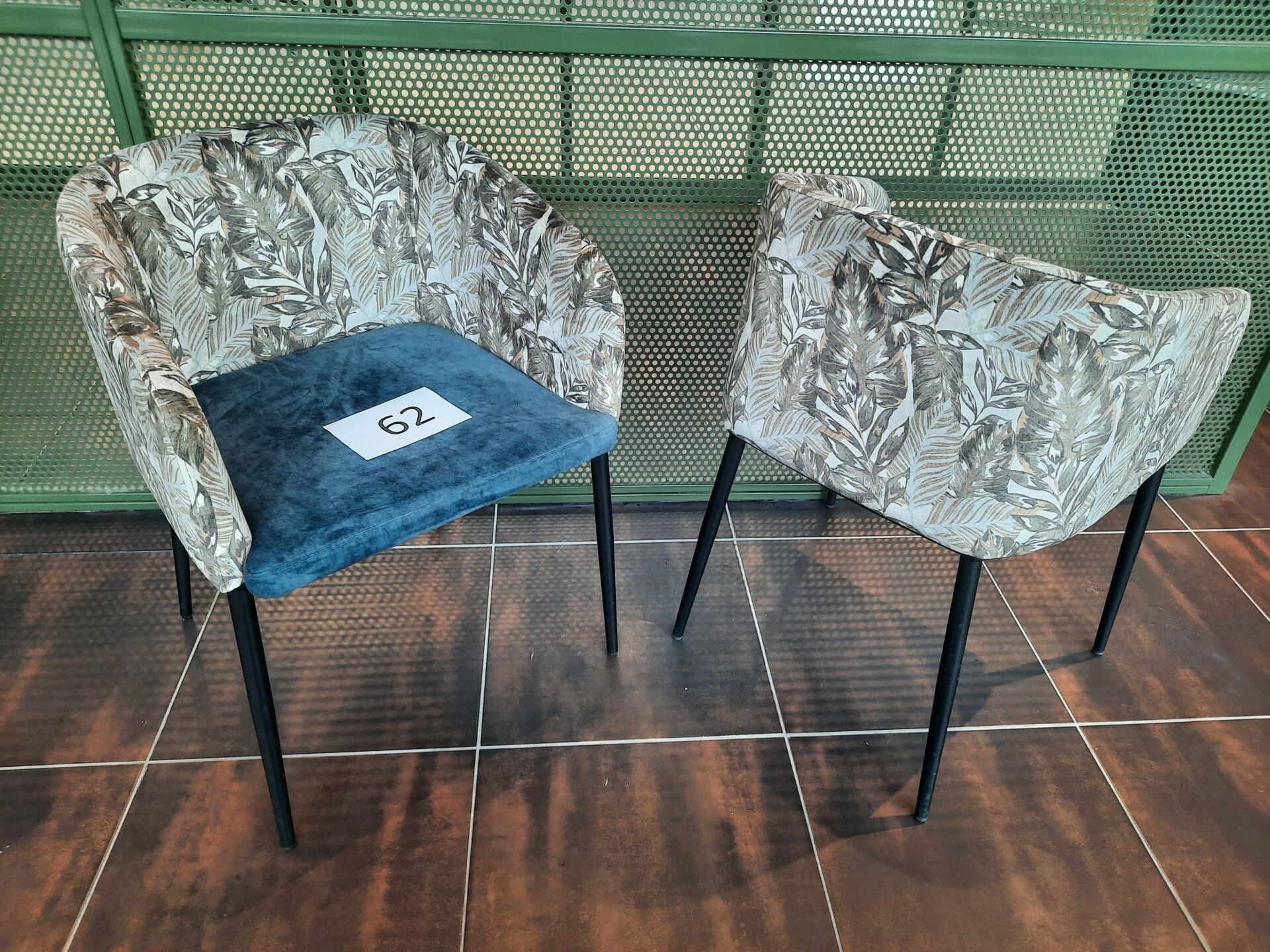 11 fauteuils de terrasse en PVC imitation tressé vert et piètement métal laqué gris