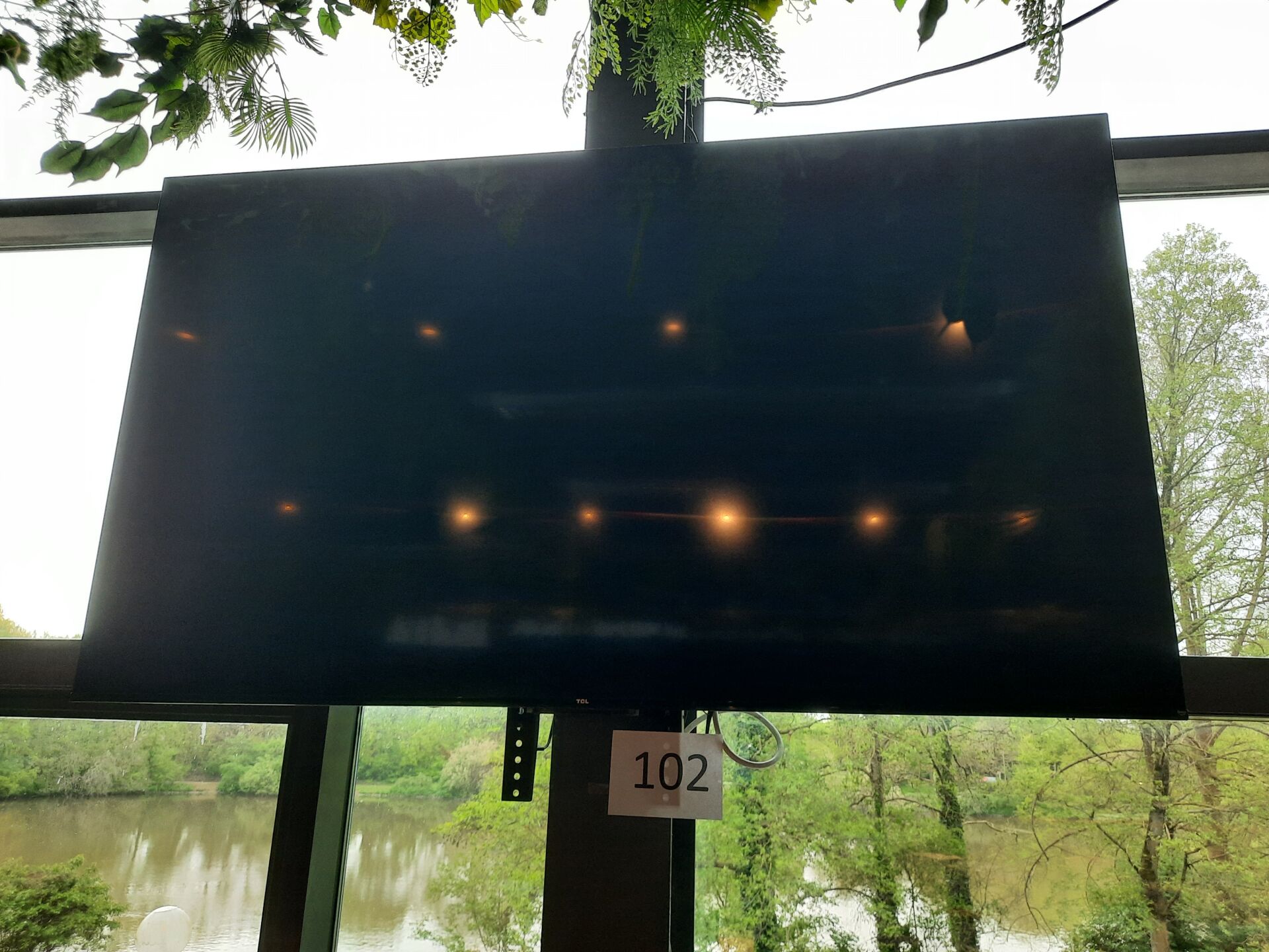 Téléviseur TCL modèle 65PF650 sur support mural (environ 160 cm), télécommande