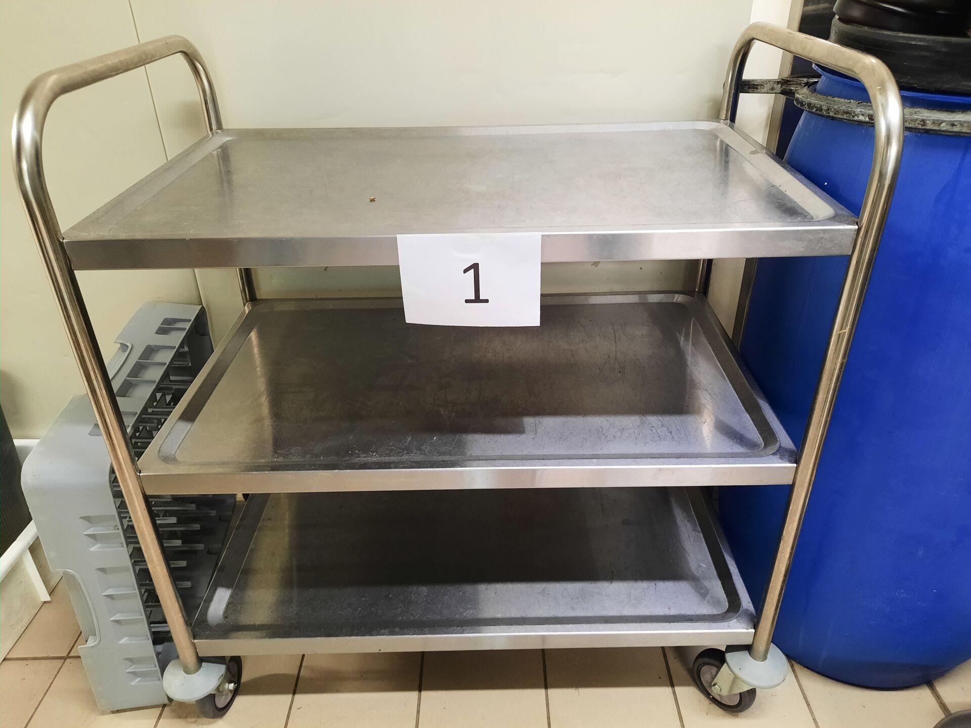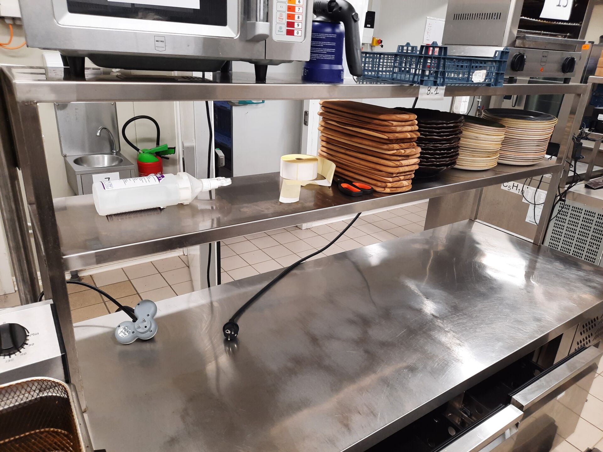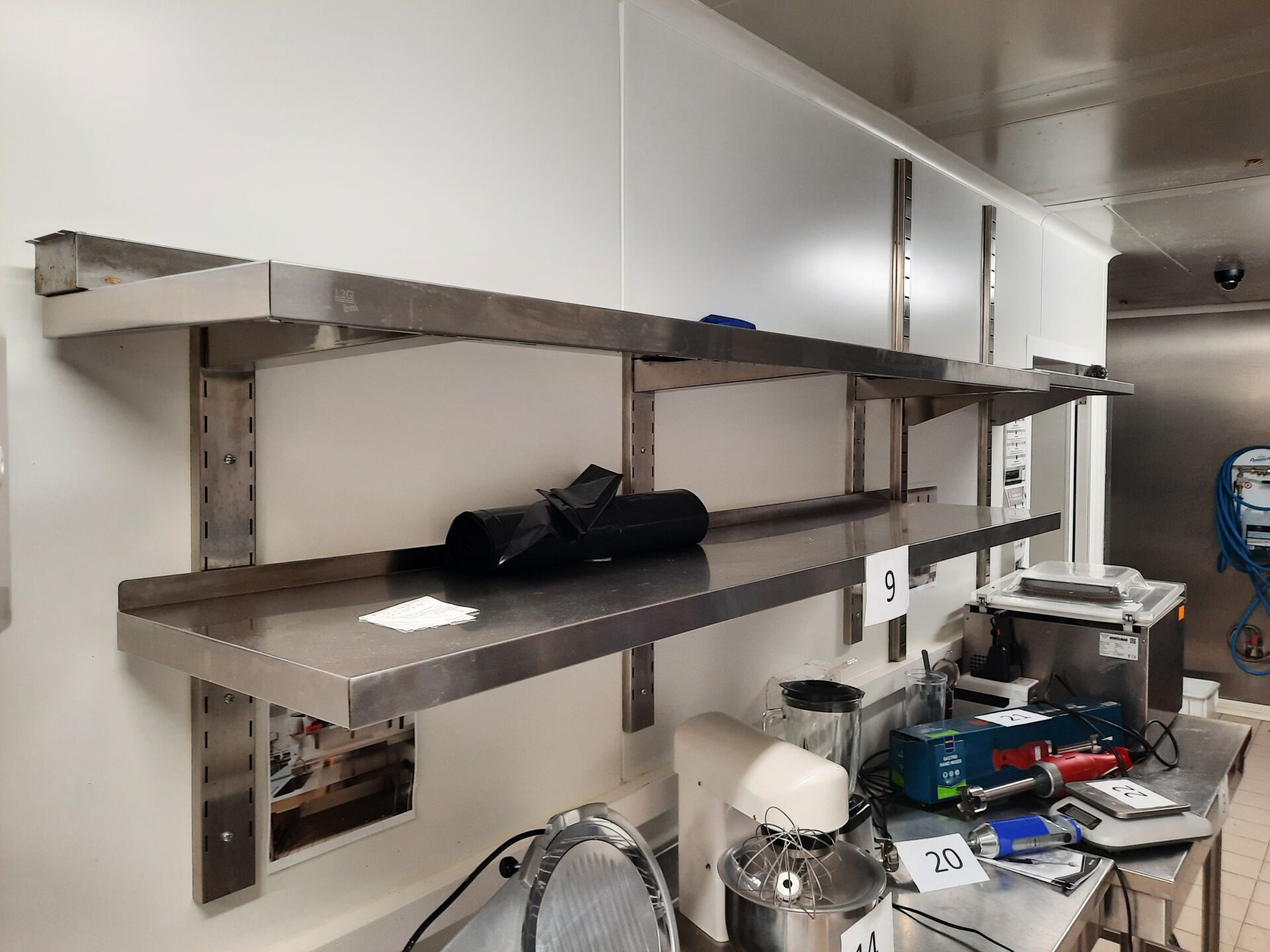 Rayonnage alimentaire formant L en aluminium à clayettes en pvc bleu sans marque ni modèle...