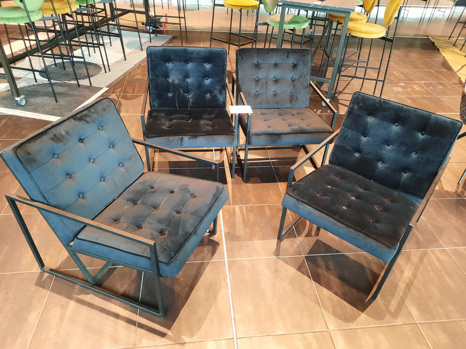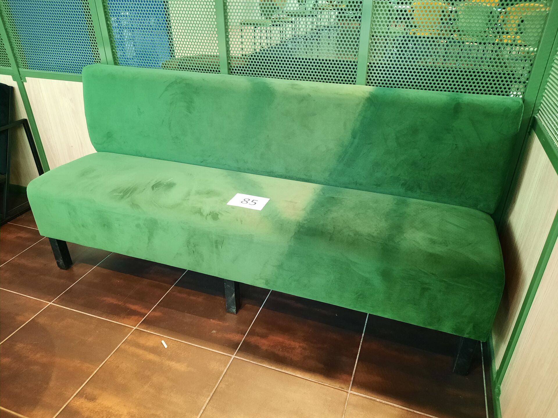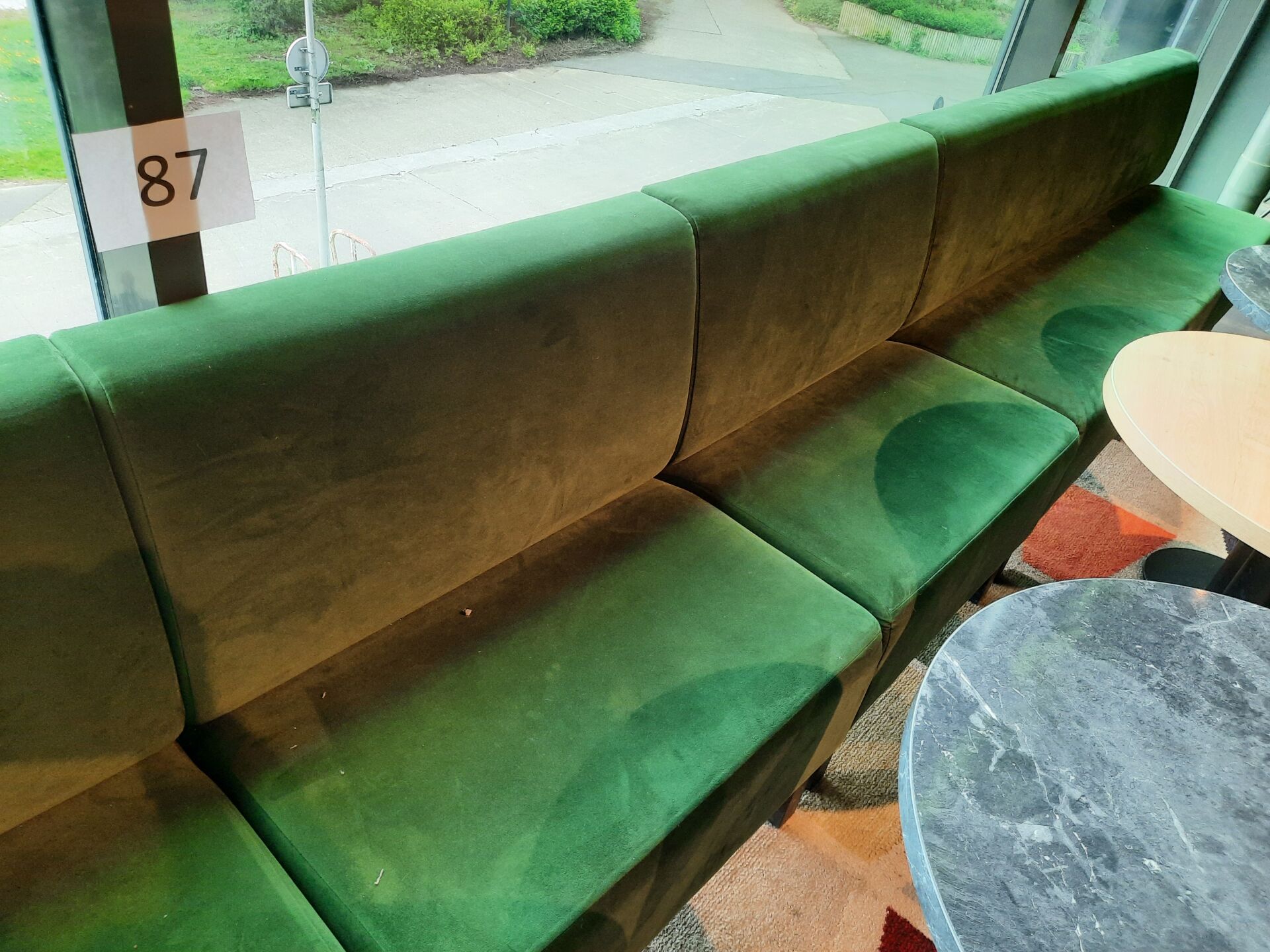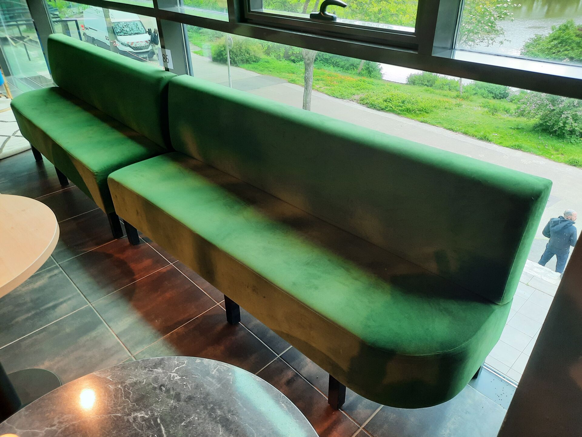 4 banquettes assise tissu vert (dont 2 de 200×60 cm et 2 de 80×60 cm)