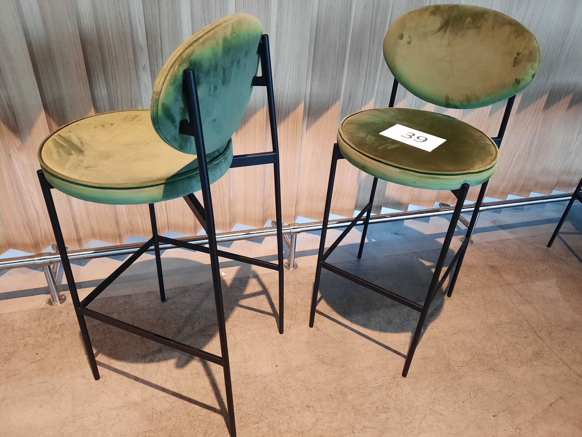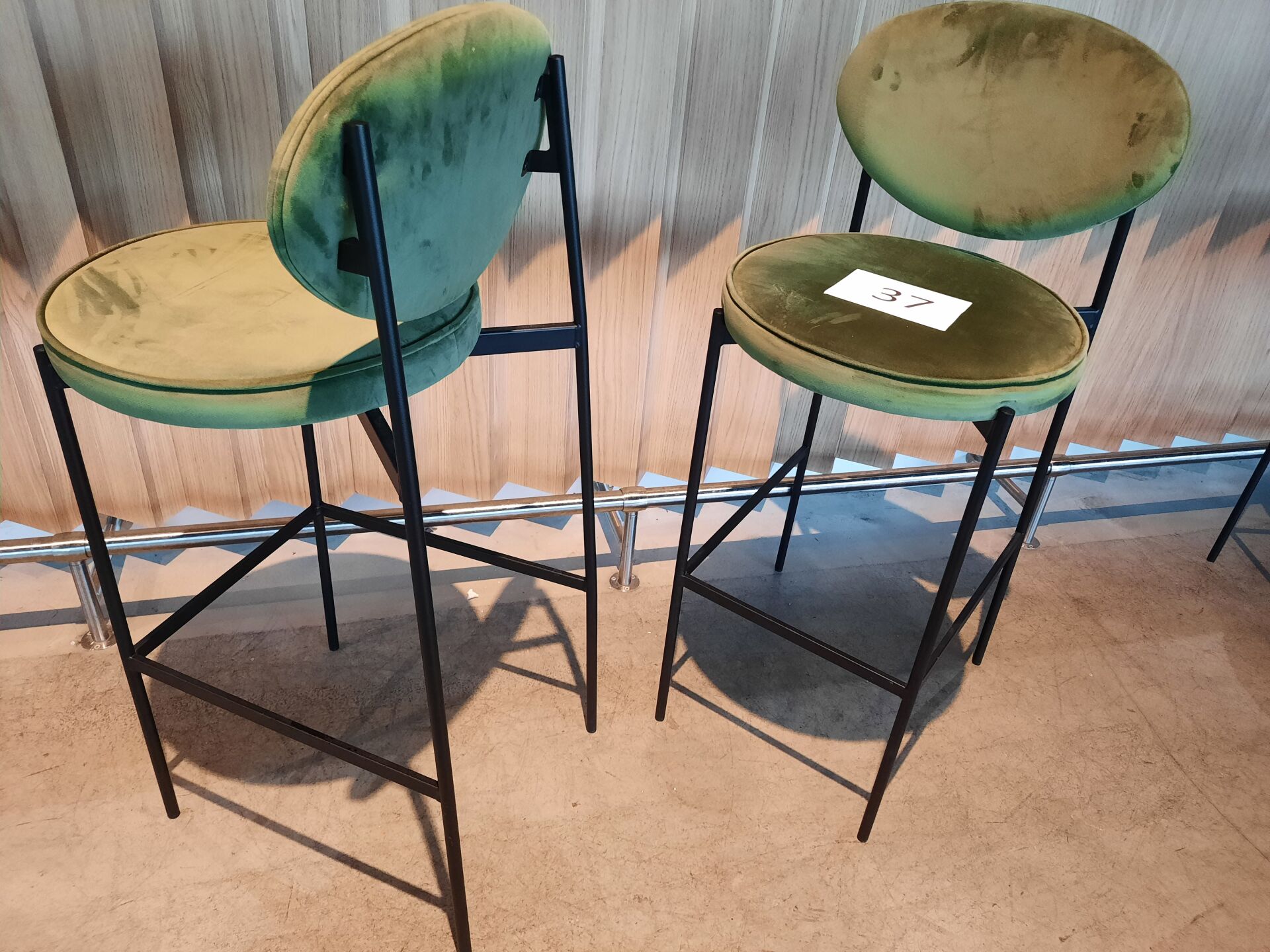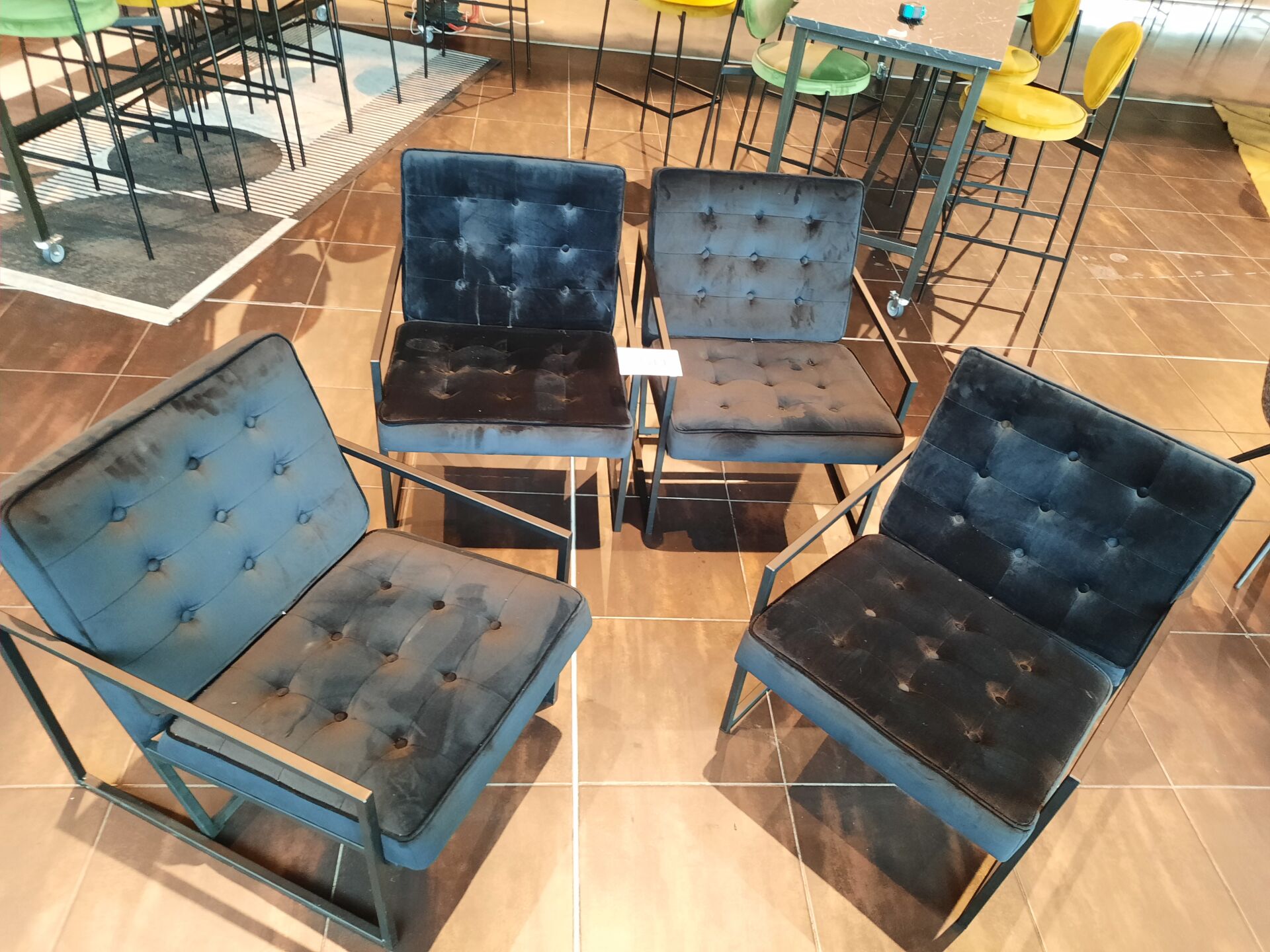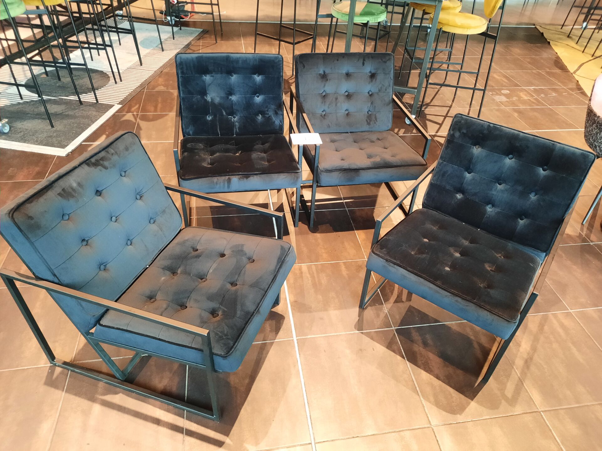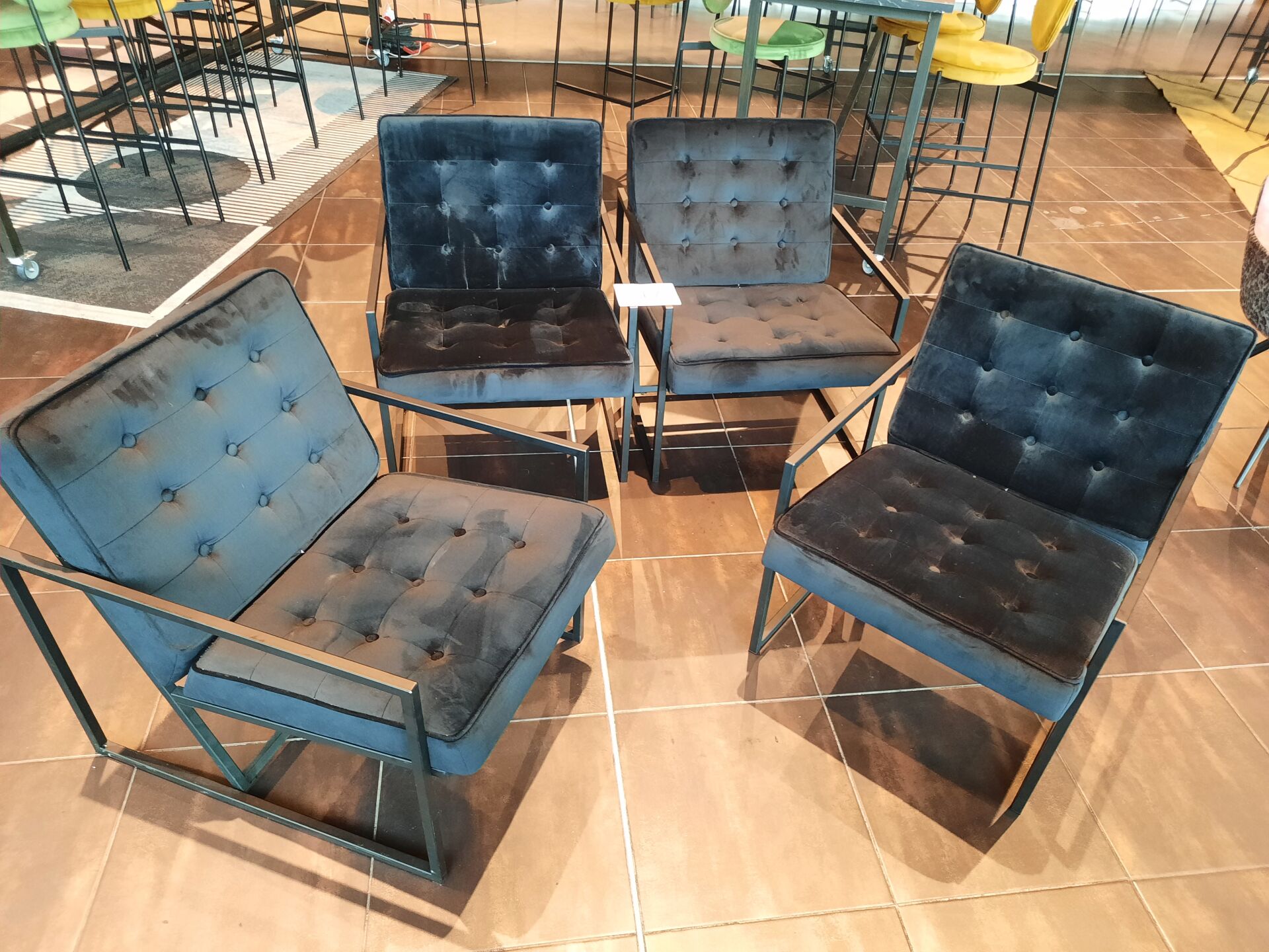 4 banquettes assise tissu vert (dont 2 de 200×60 cm et 2 de 80×60 cm)
