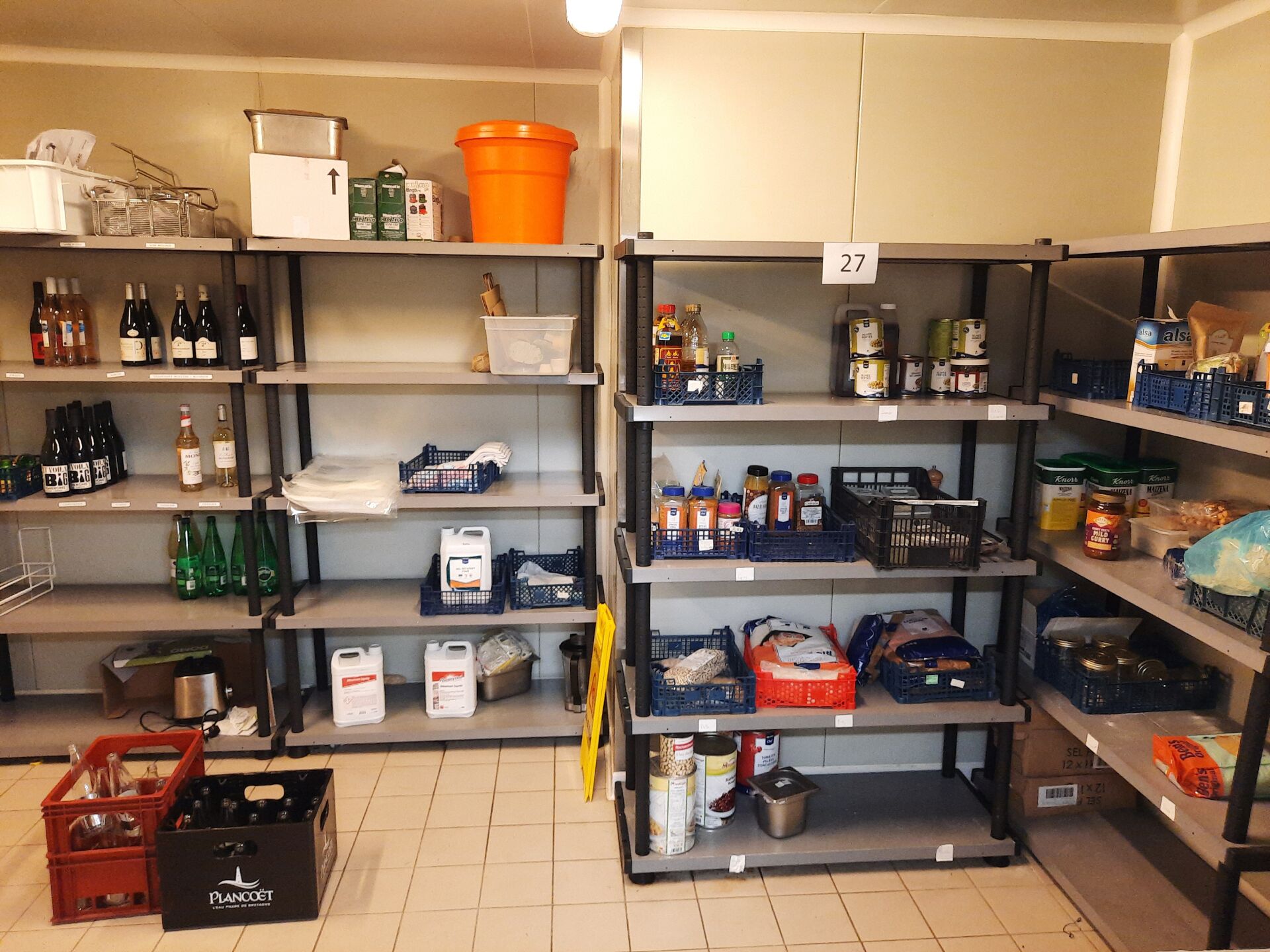 Ensemble de denrées alimentaires dont conserves, légumes secs, riz, condiments