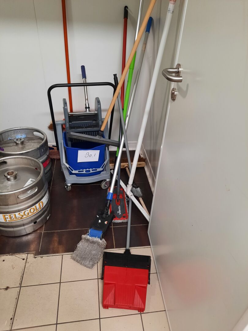 Ensemble de nécessaire de ménage dont chariot de ménage, raclette, balais…
