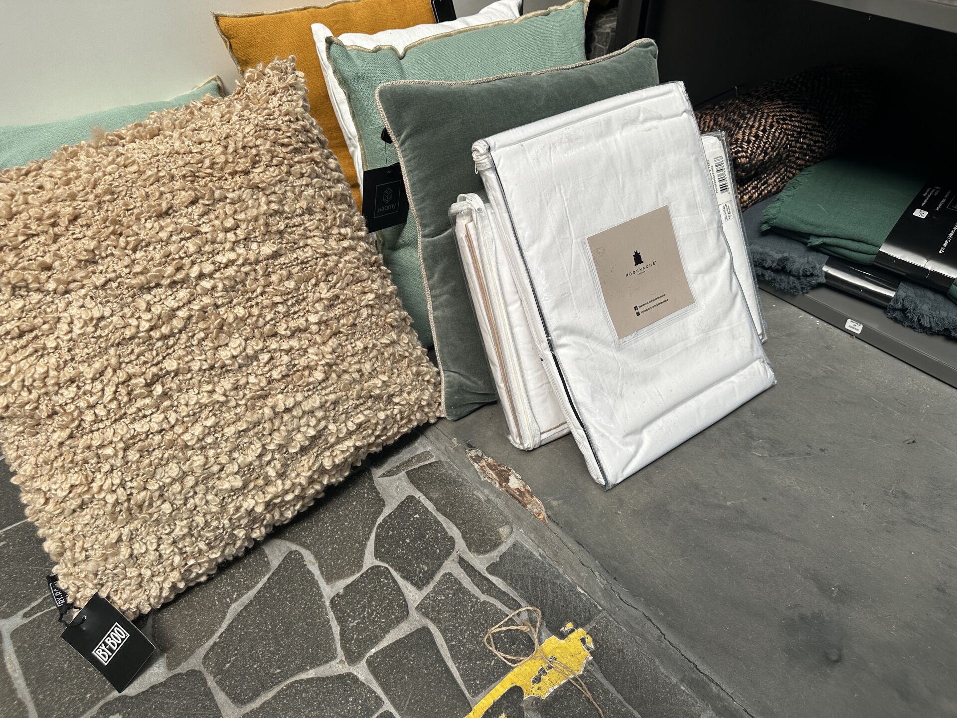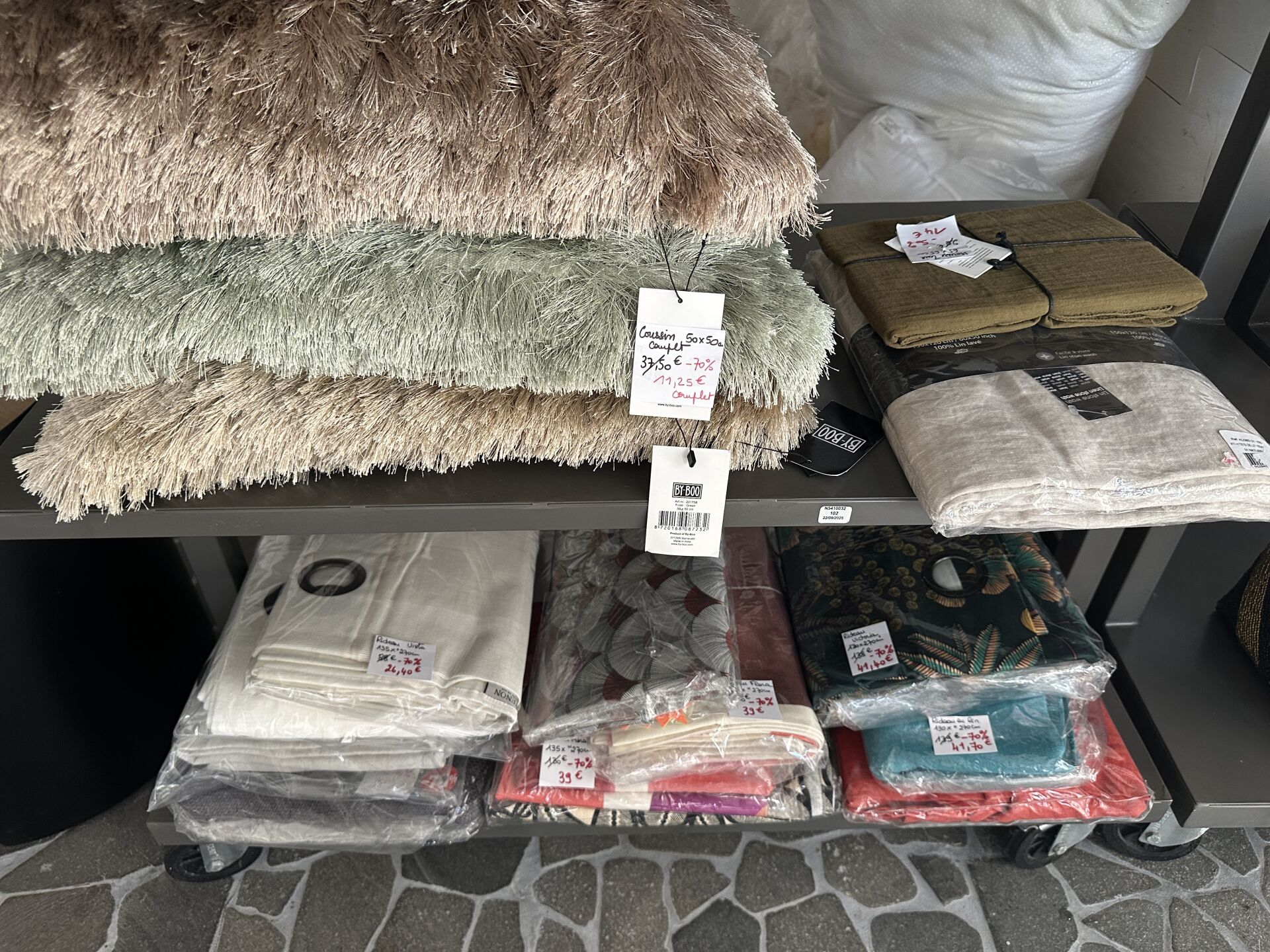 1 tapis BY BOO KALA taupe coton 160×230 cm; Prix de vente magasin : 400 €