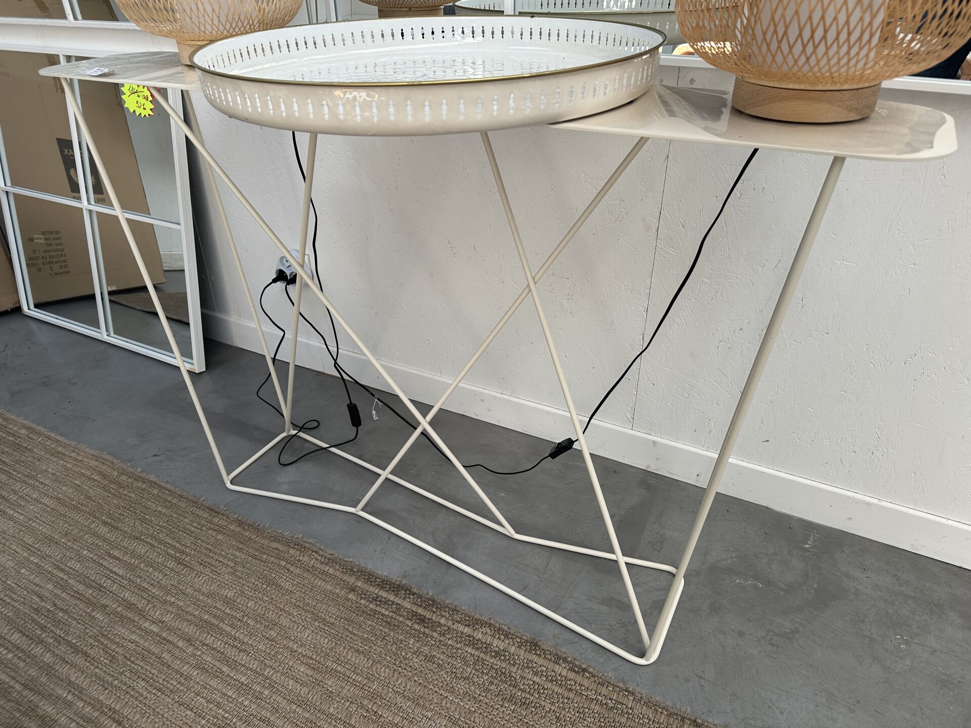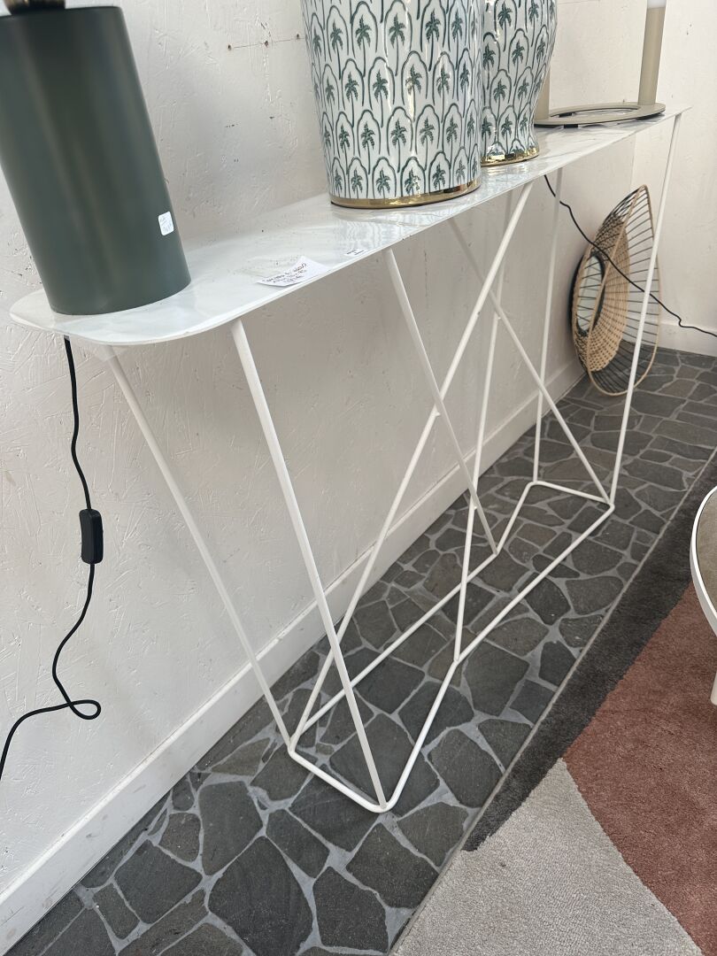 1 console PRILEAS 133X25X85cm métal blanc ; Prix de vente magasin : 420 €
