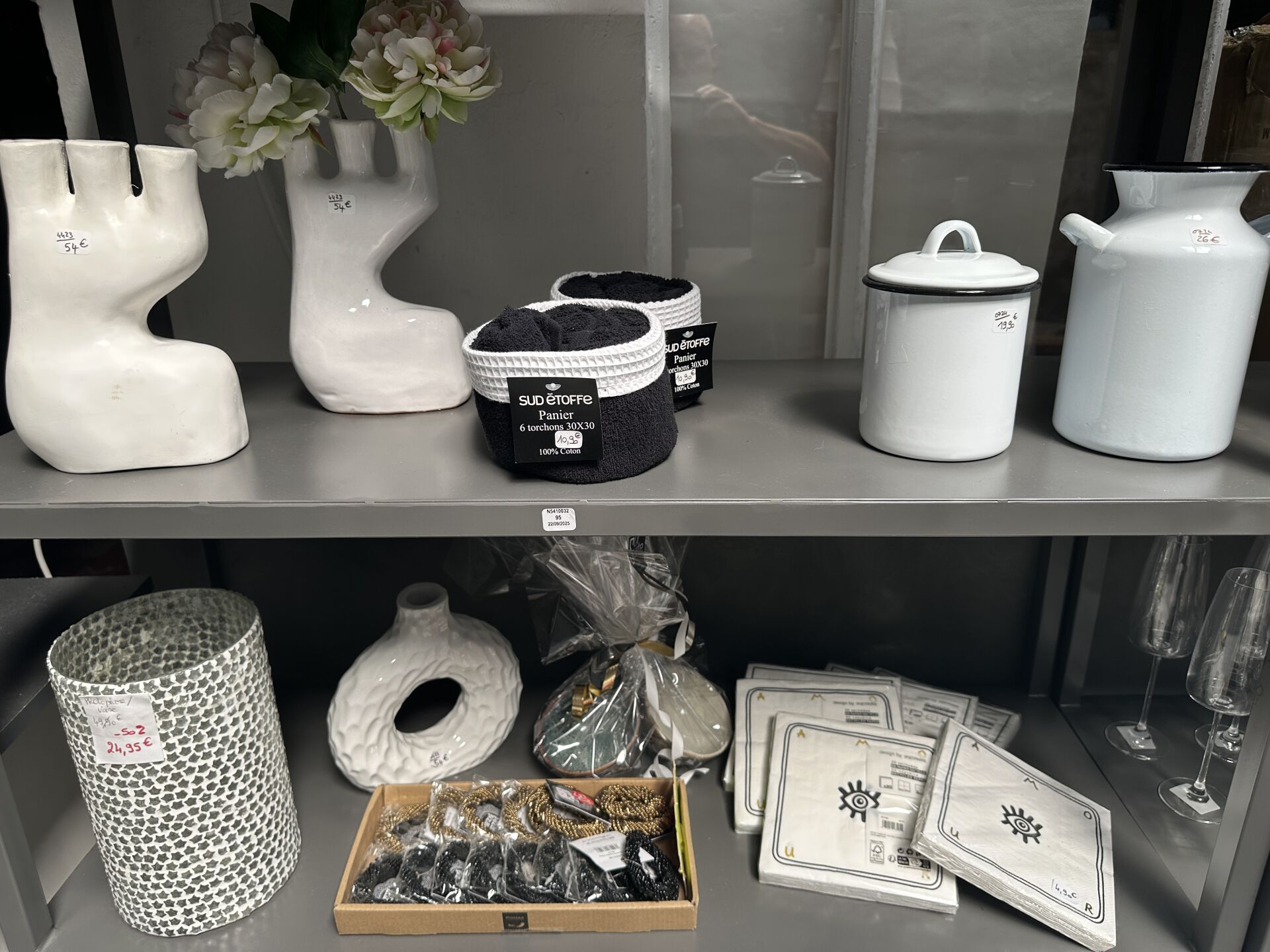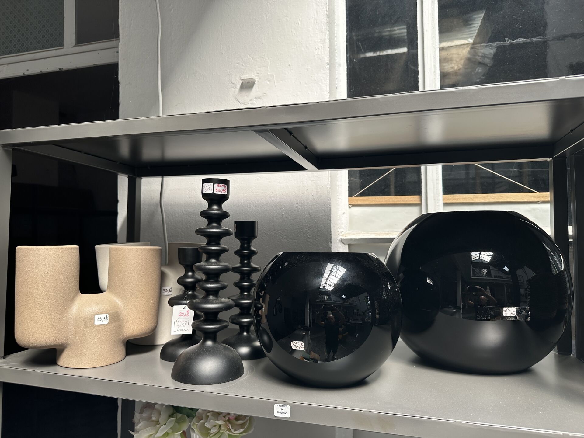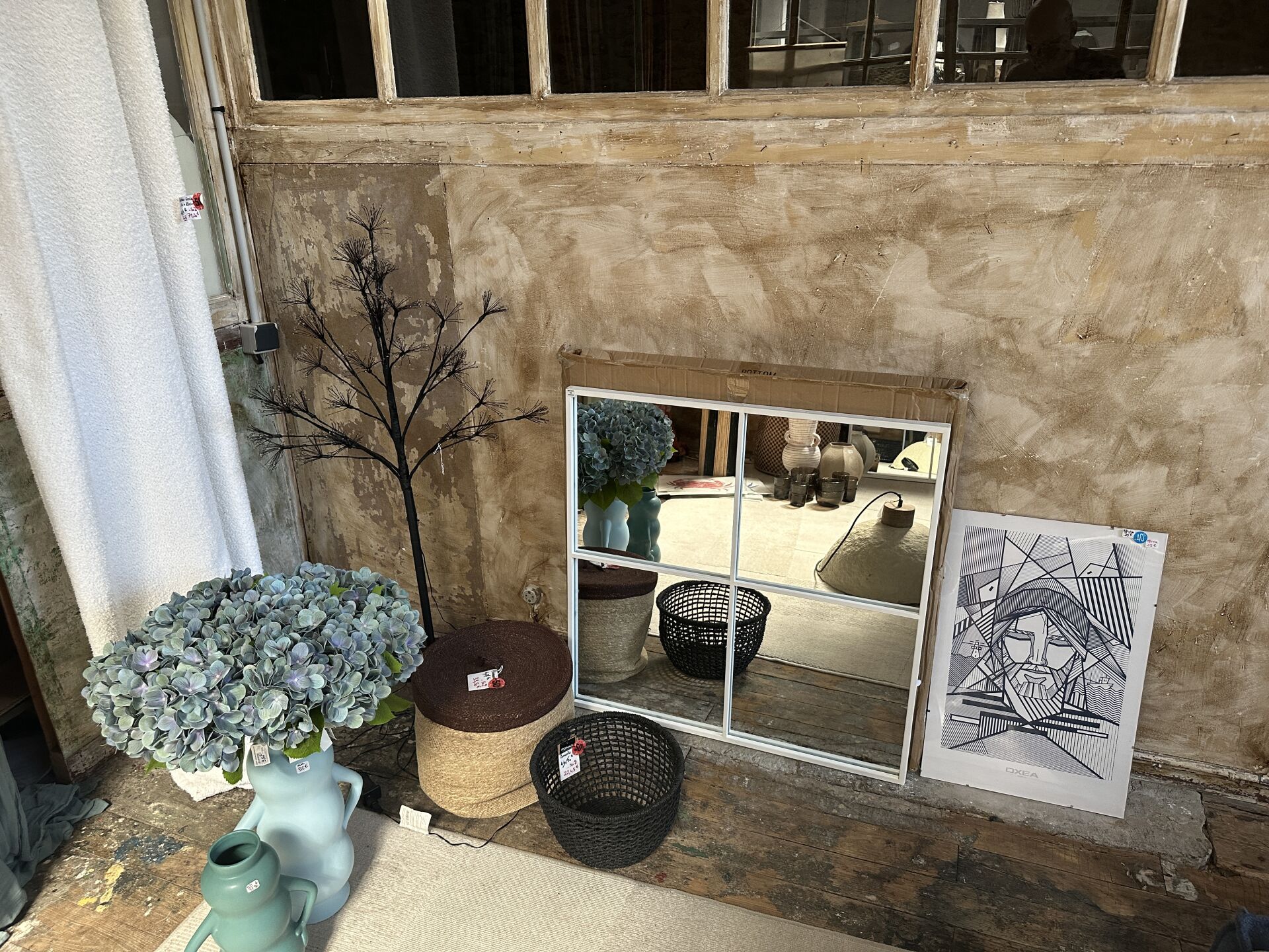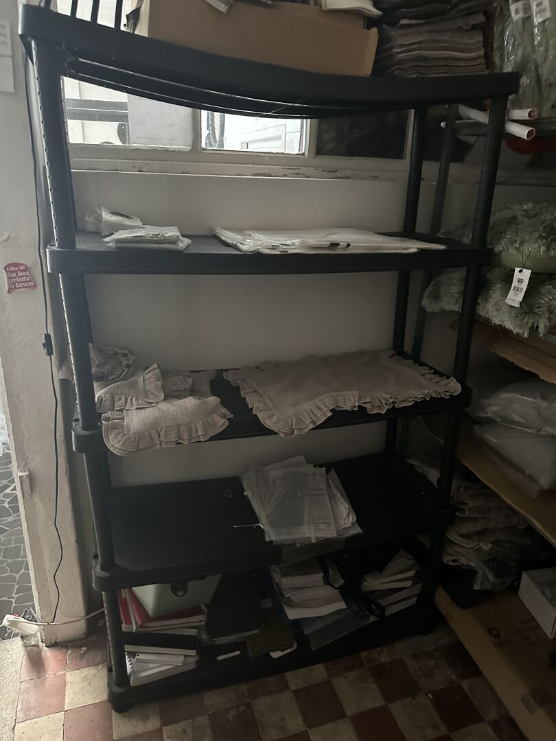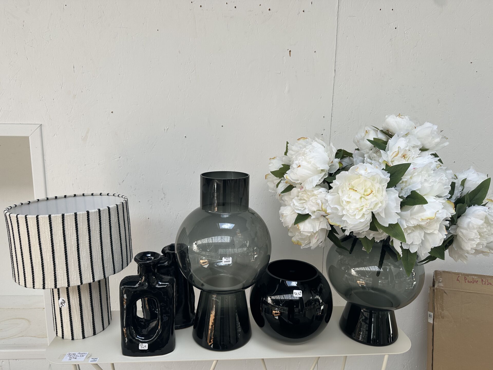 Contenu d’une petite réserve comprenant un stock d’objets de décoration dont...