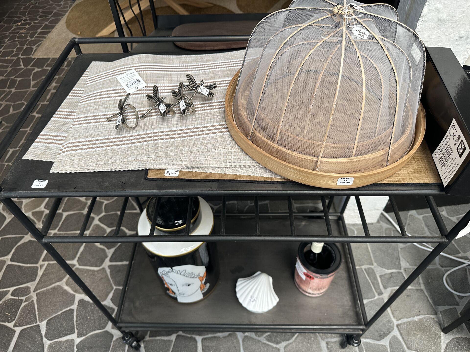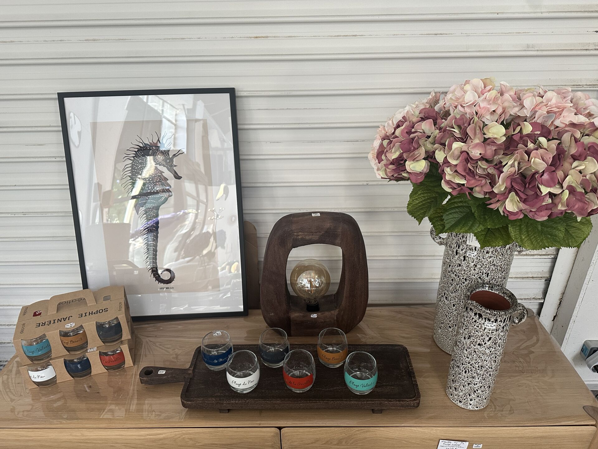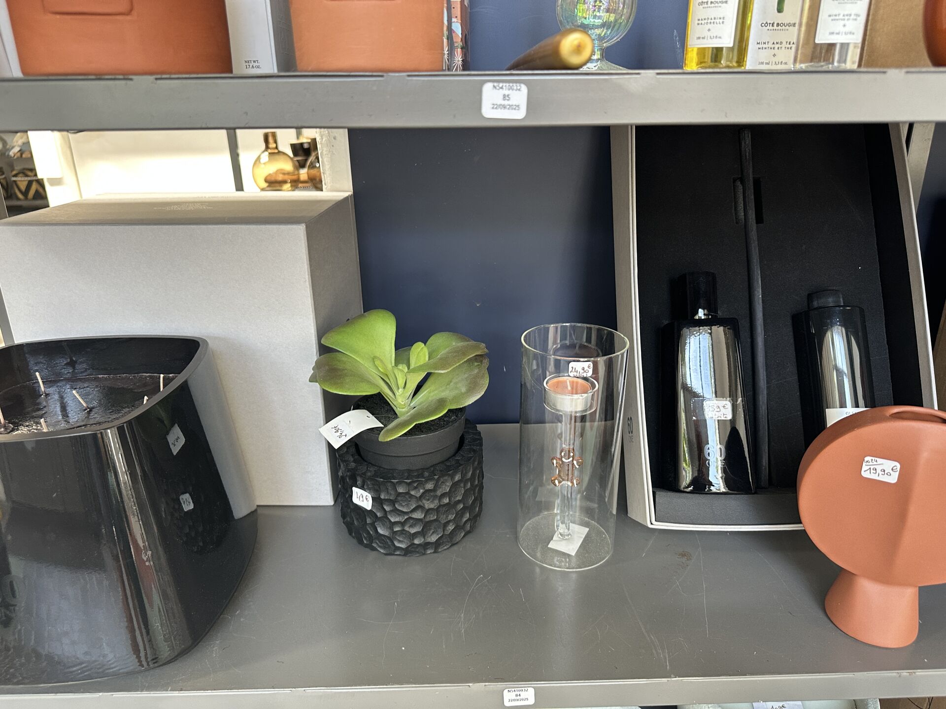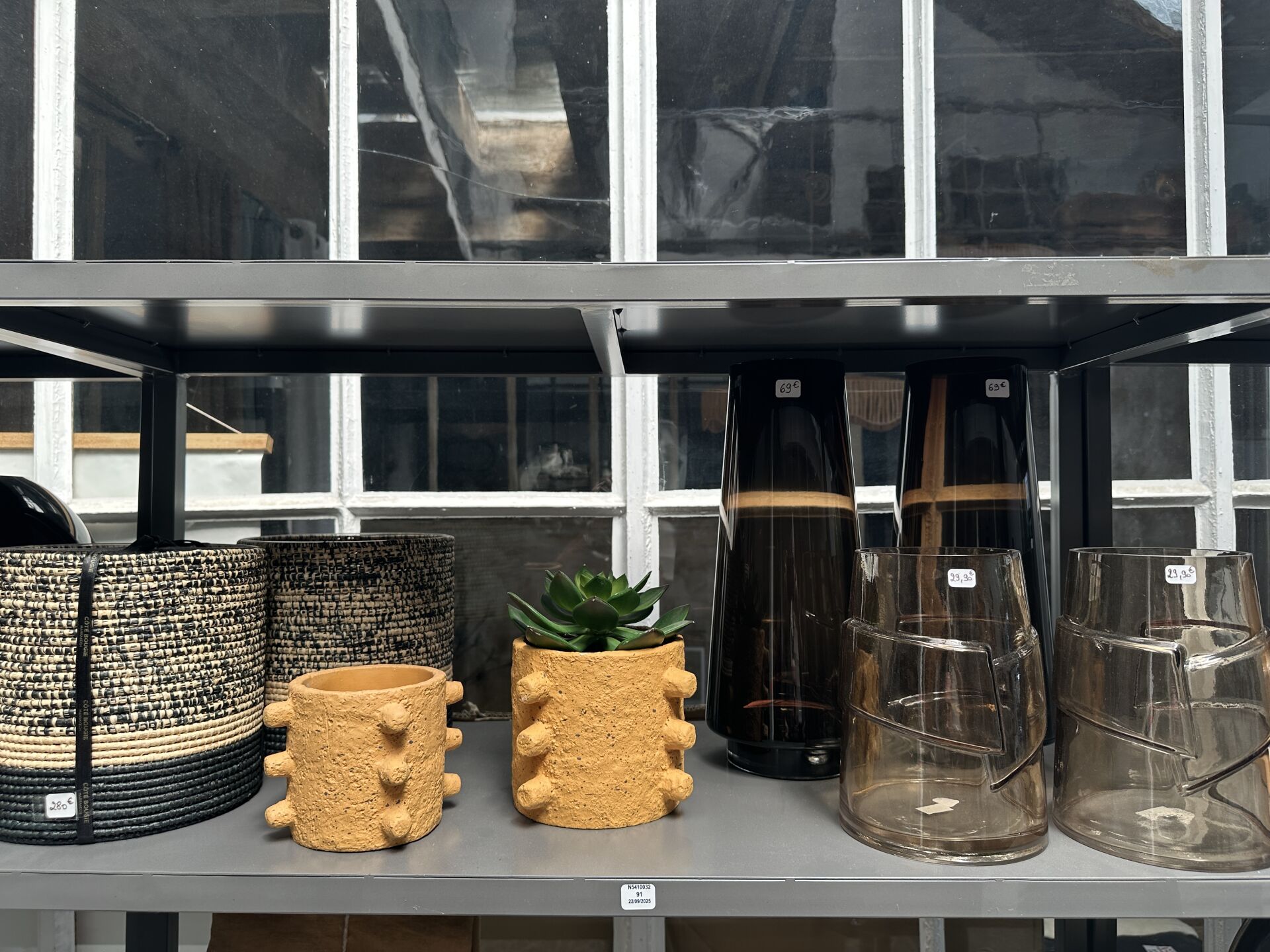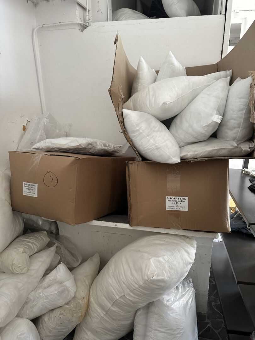 Contenu d’une petite réserve comprenant un stock d’objets de décoration dont...