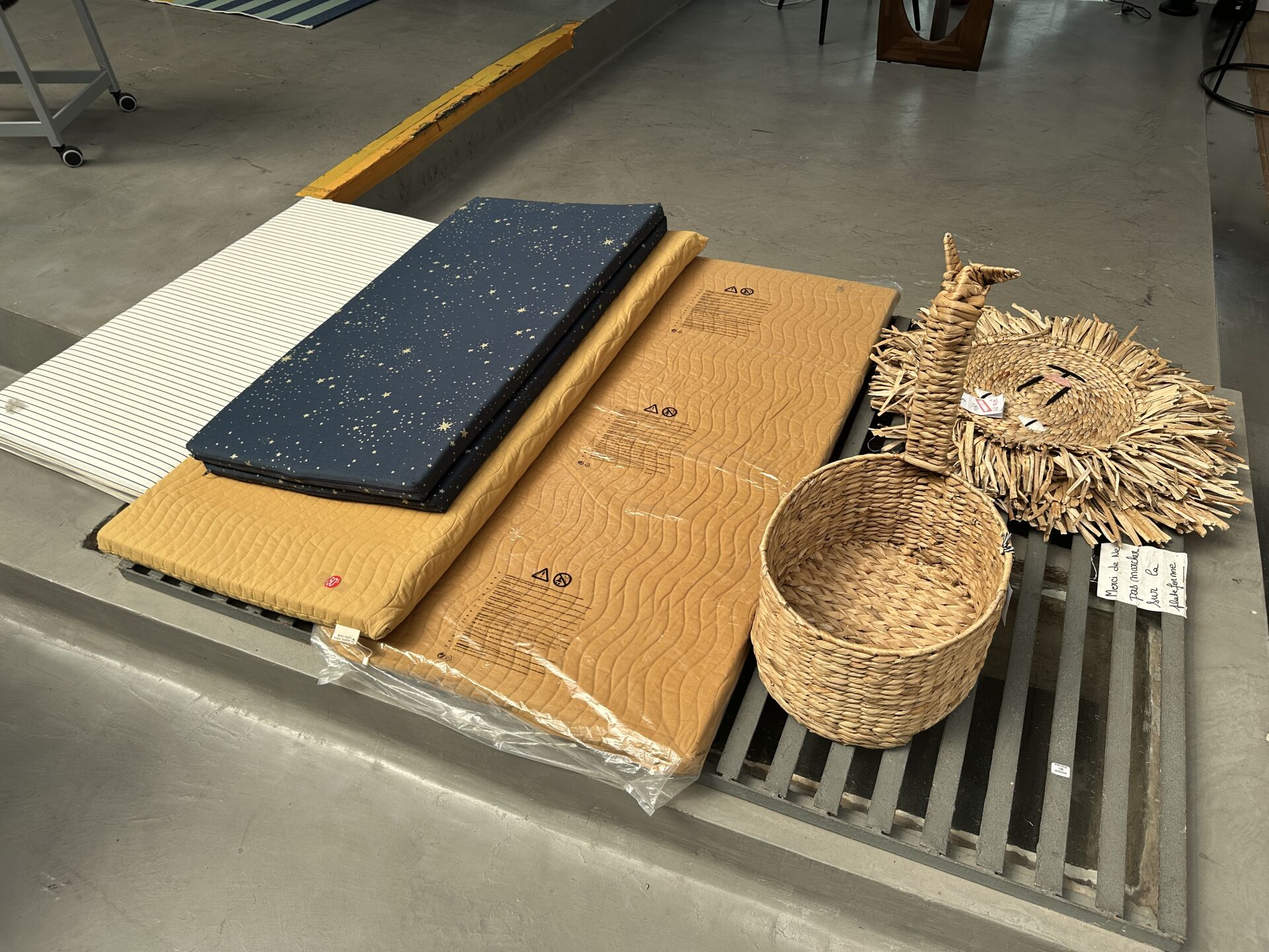 4 matelas de sol jaune moutarde, bleu étoilé et blanc rayé bleu, 100×100 cm + 3...