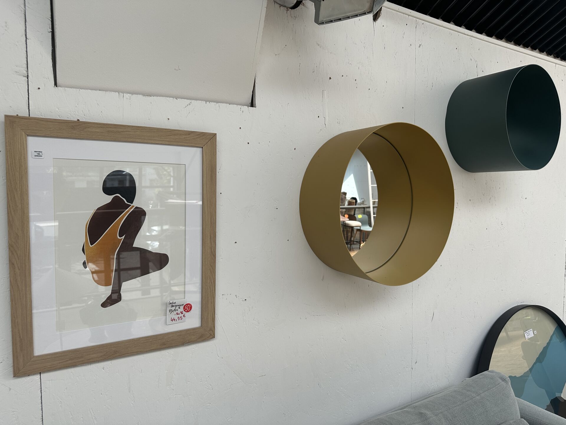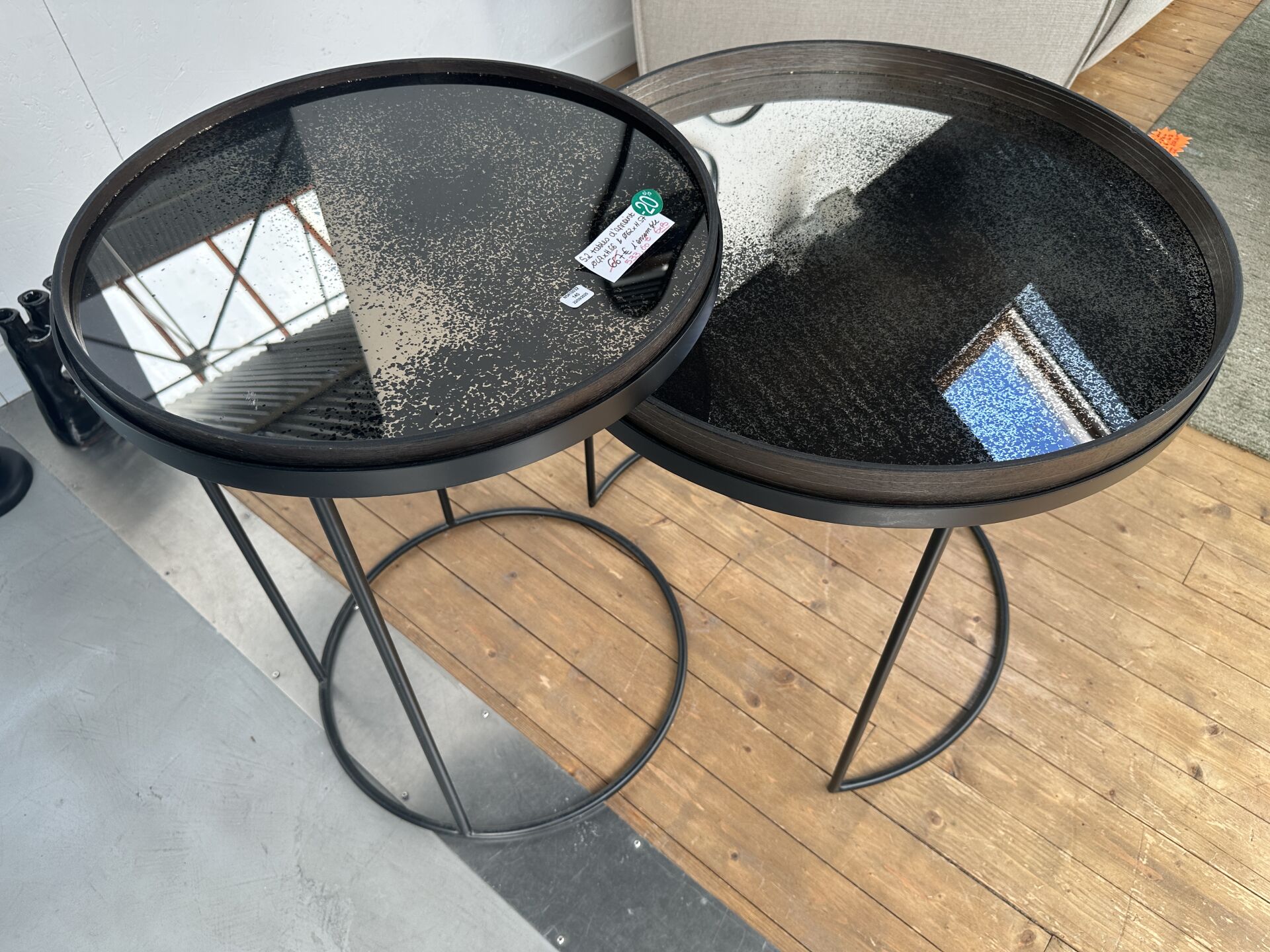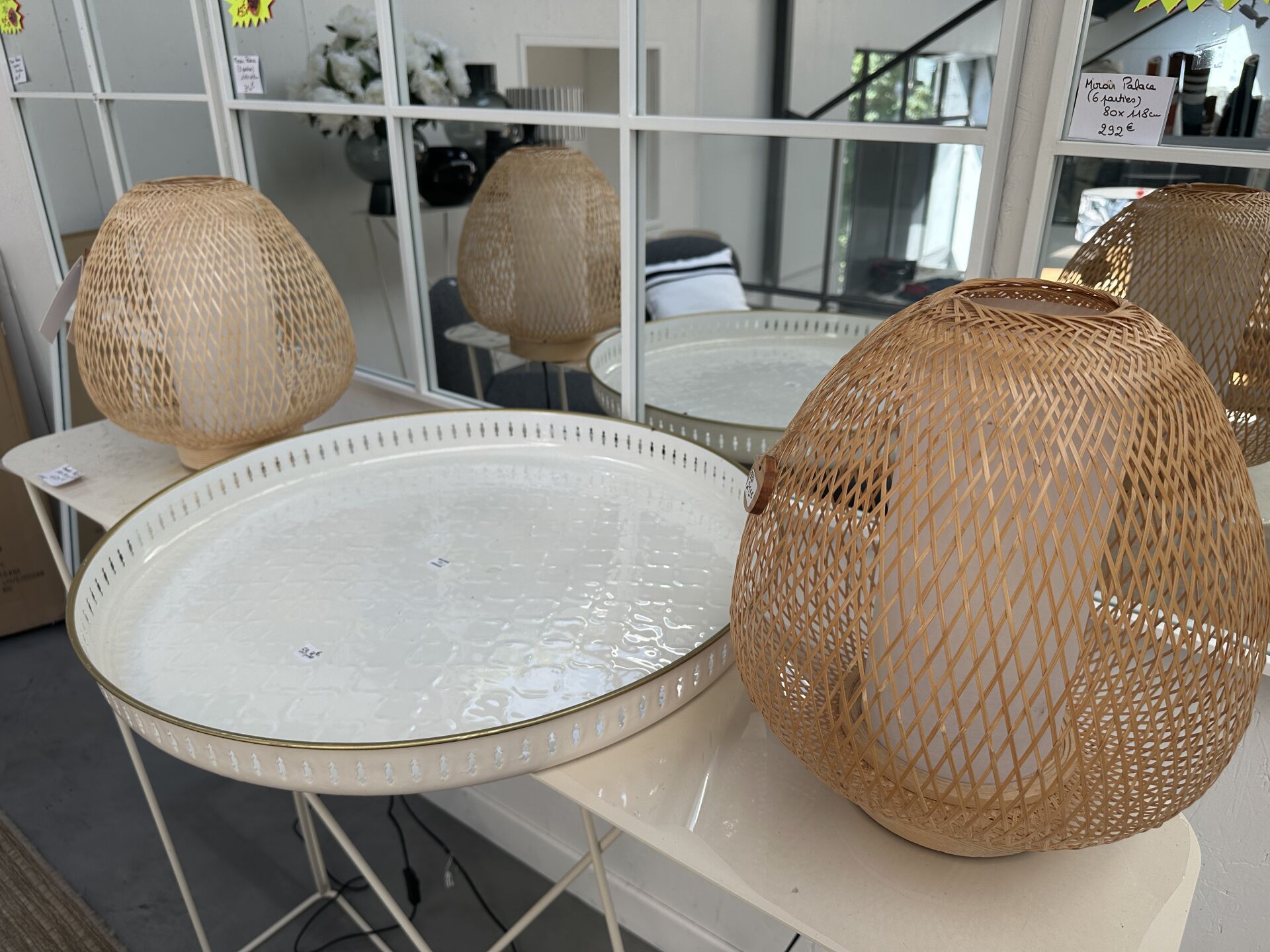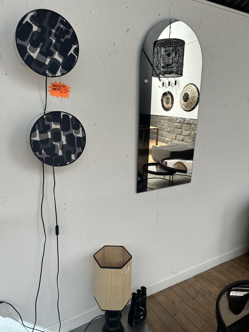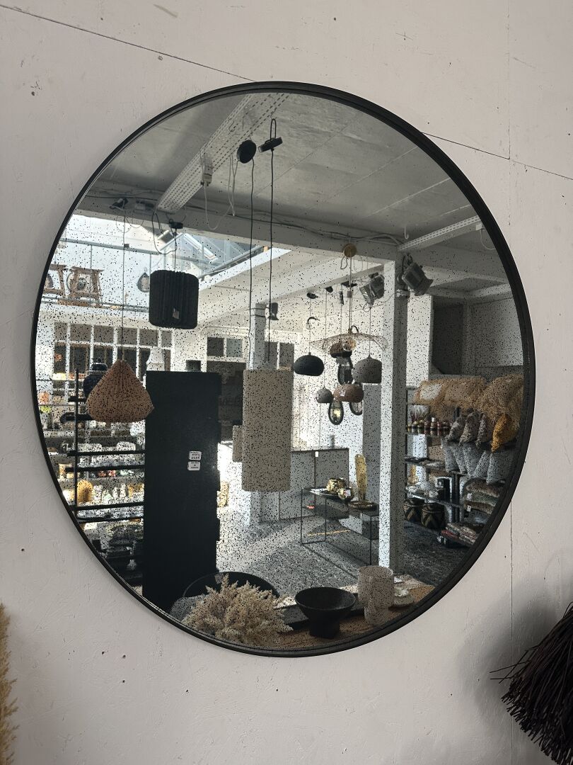 1 grand miroir rond effet ancien diamètre 121cm; Prix de vente magasin : 700 €