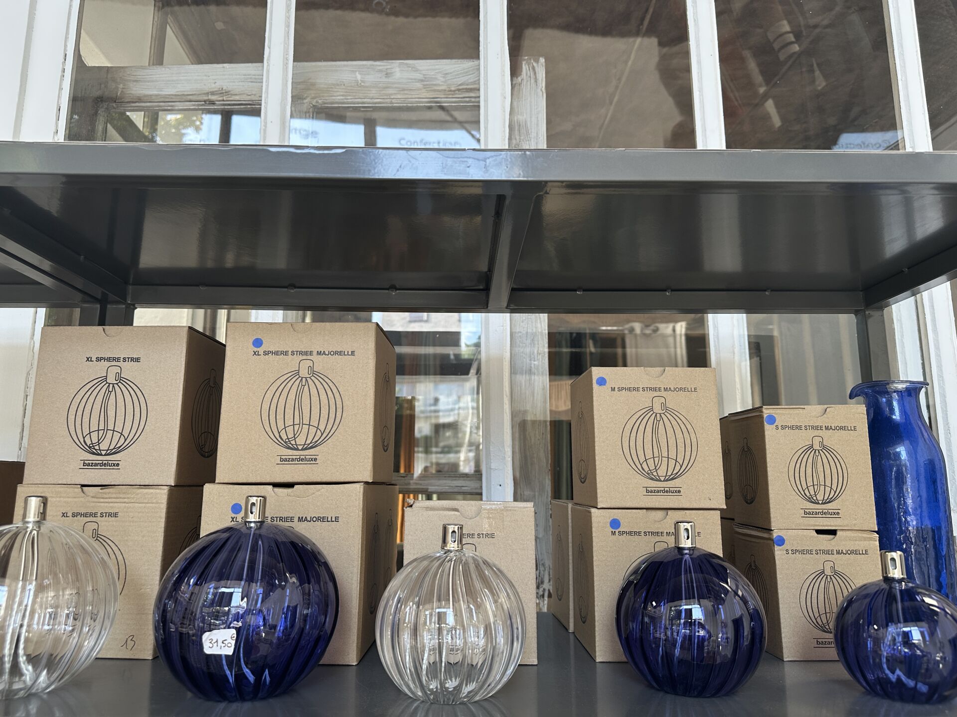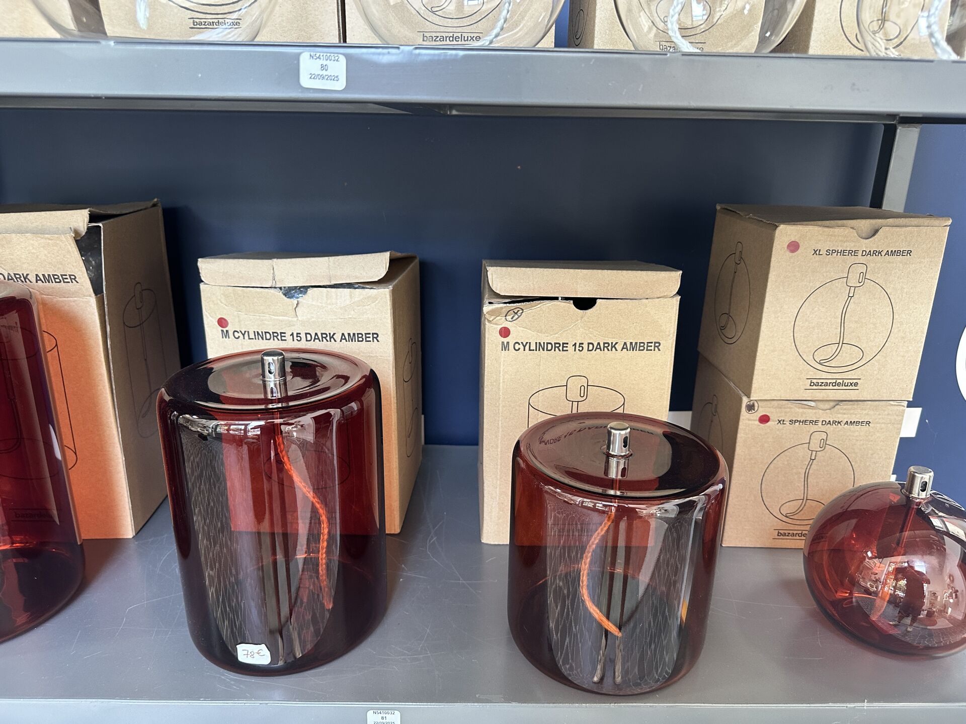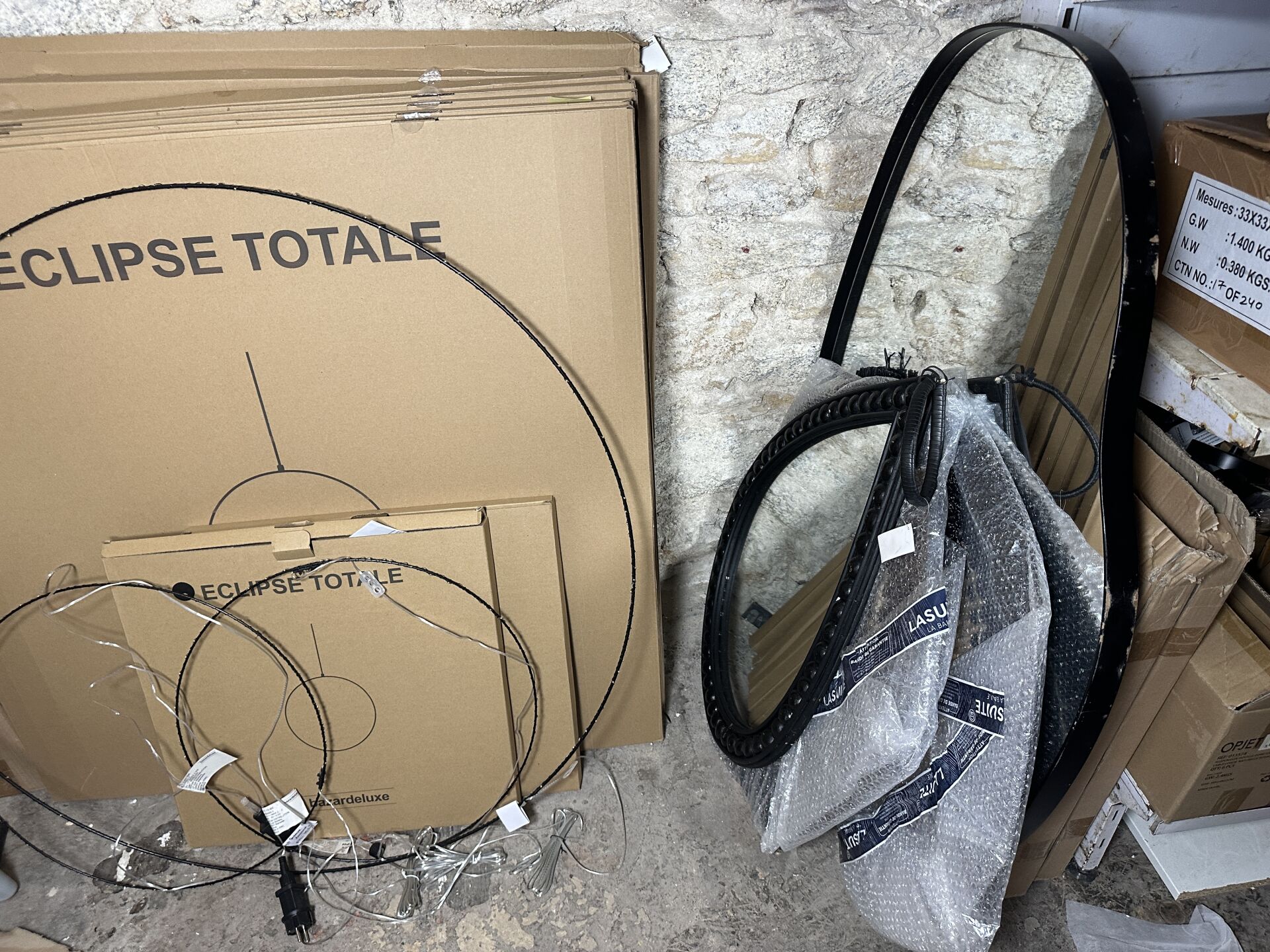 Dans une réserve, sur 1 module, ensemble de décoration dont environ 12 lampes à poser BY BOO...