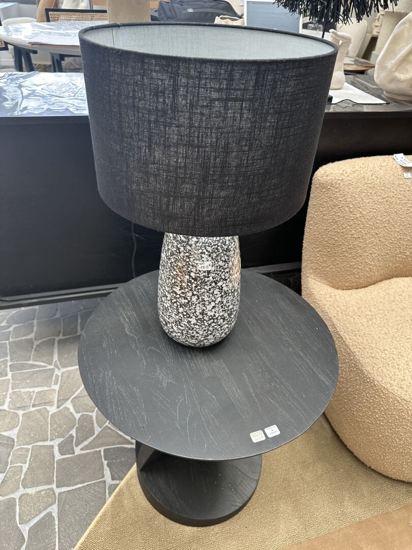 2 pots à eau POMAX glaise émaillée blanc et noir café, 1 lampe bois teinté modèle 221792,...