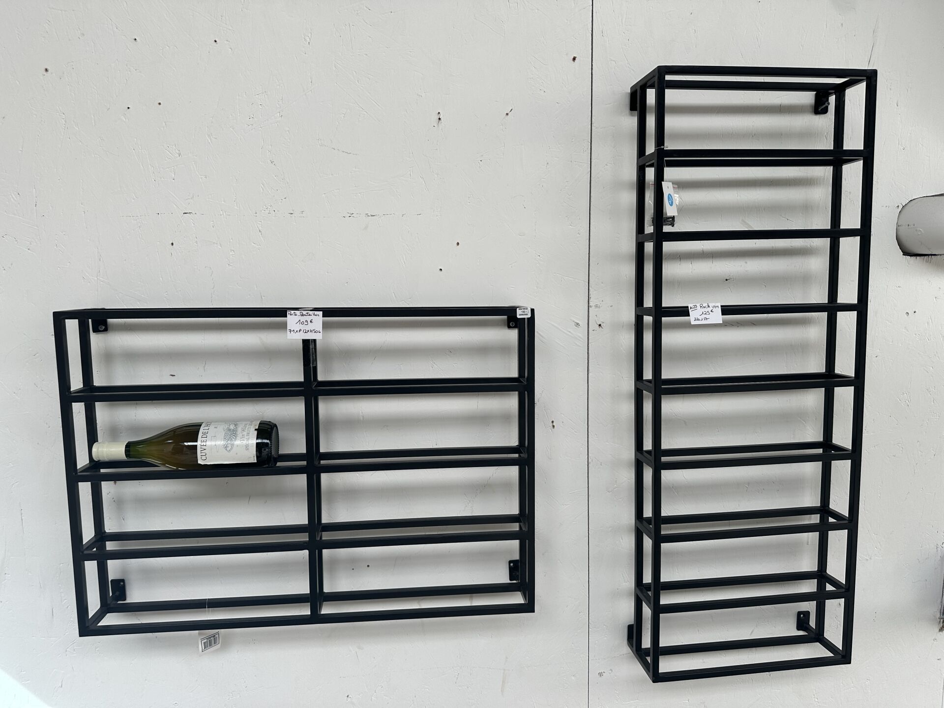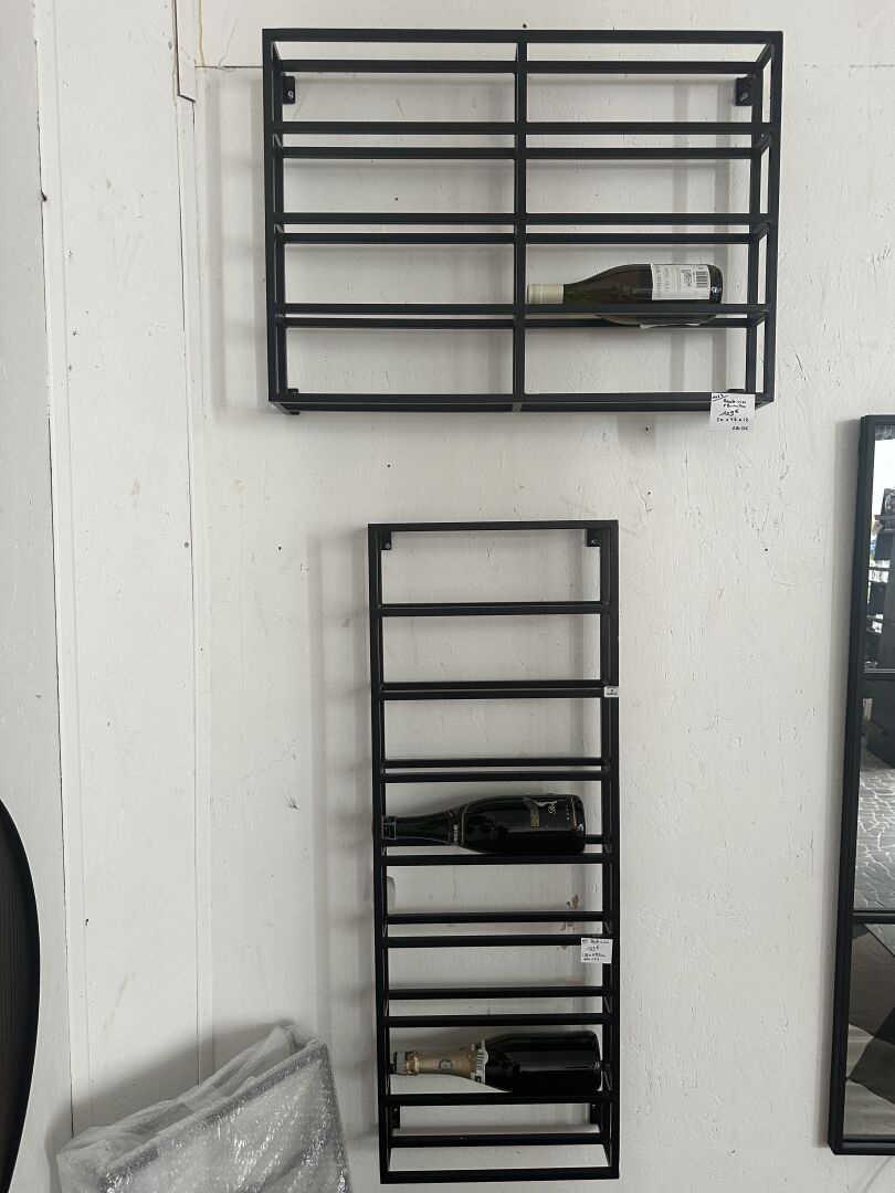 3 portes bouteilles muraux métal noir 36X99 ou 50X73cm; Prix de vente magasin : 350 €