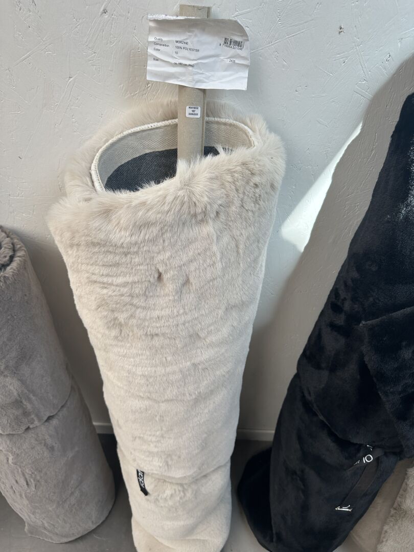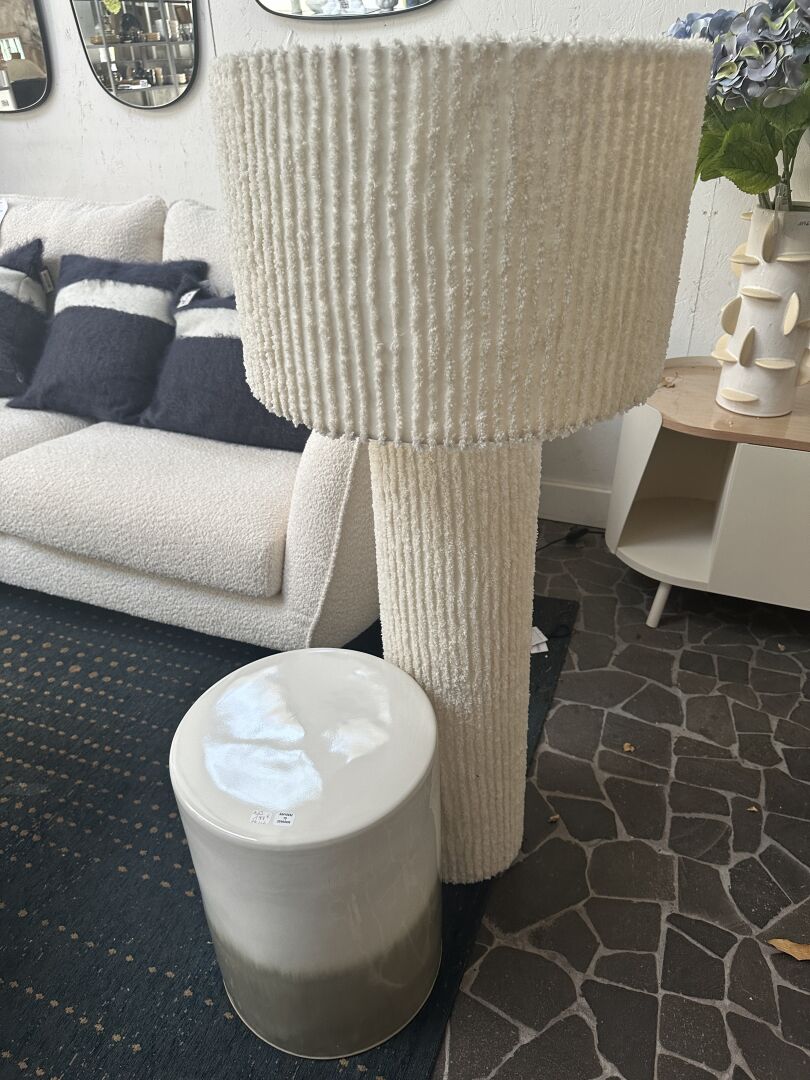 1 lampadaire STRIP BAZAR DELUXE, tissus bouclé blanc cassé, hauteur 114cm, diamètre 46cm, avec...