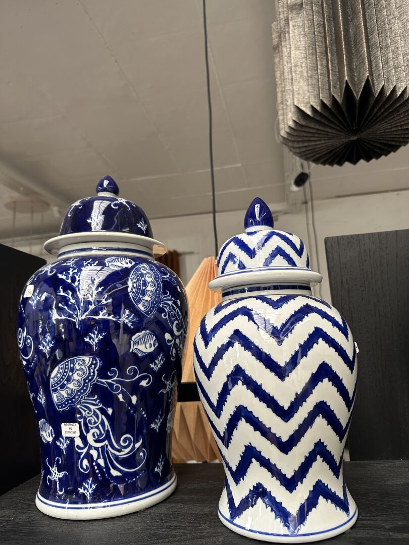 2 pots porcelaine style asiatique FANCI bleu et blanc; Prix de vente magasin : 160 €