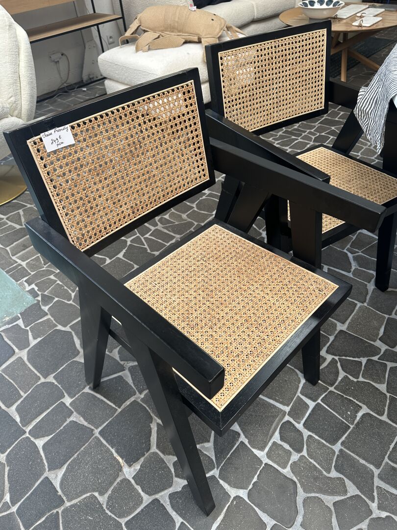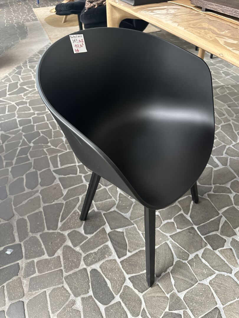 2 fauteuils AAC22 coque PVC noir, pieds bois noir; Prix de vente magasin : 315 €