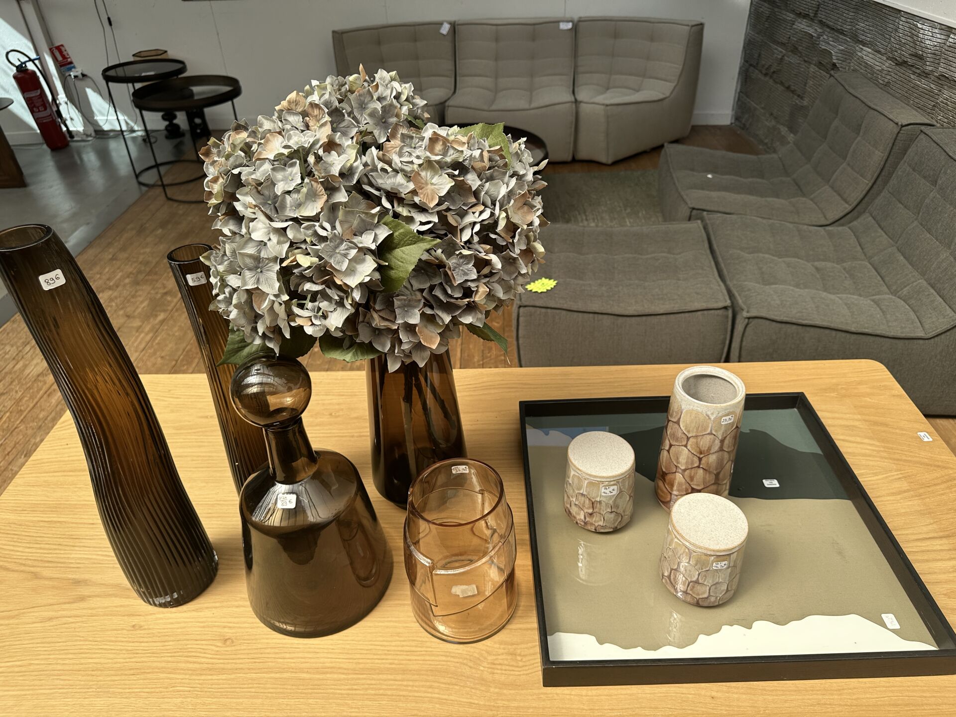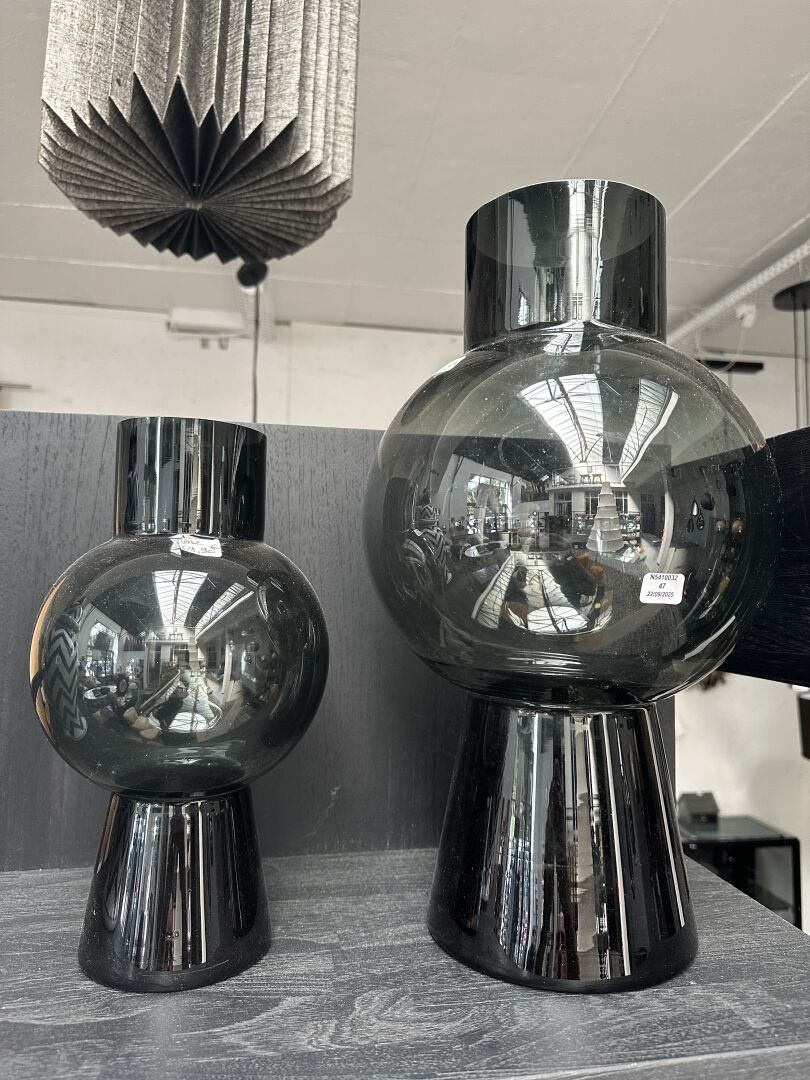 2 vases verre fumé noir VASO ; Prix de vente magasin : 180 €