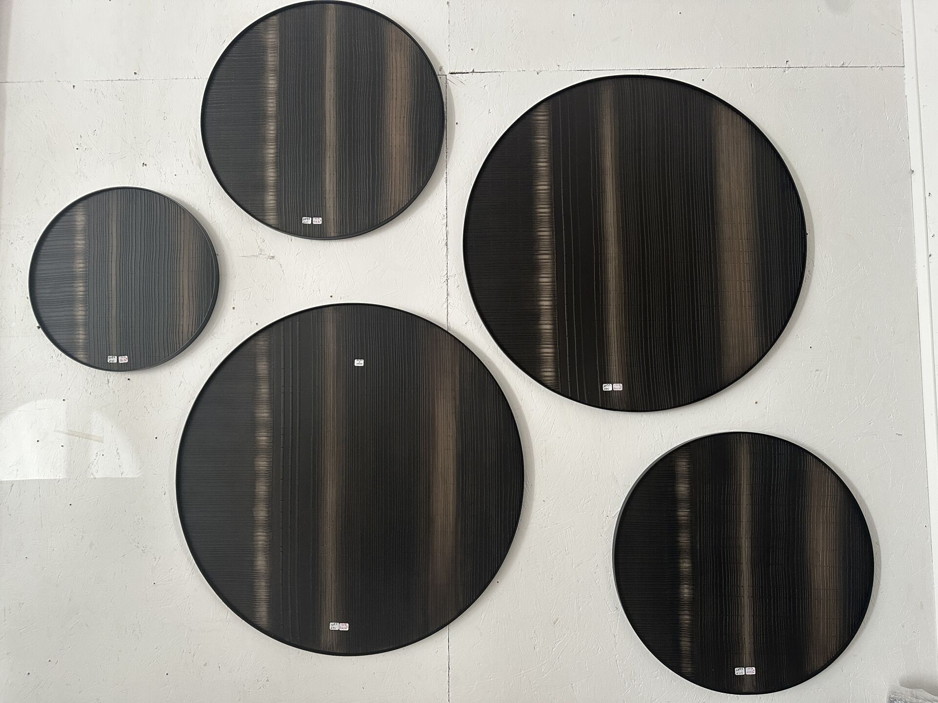 5 décorations murale ETHNICRAFT rondes panneaux bois et cadres métal différents diamètres...