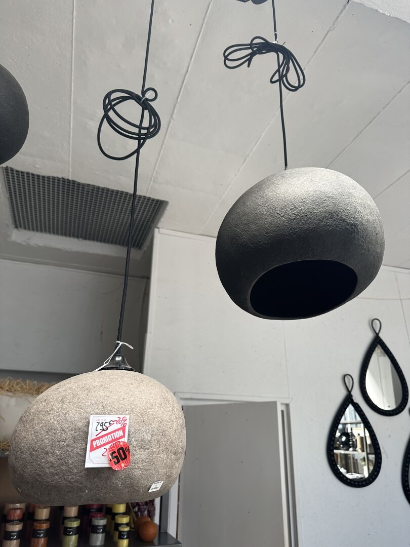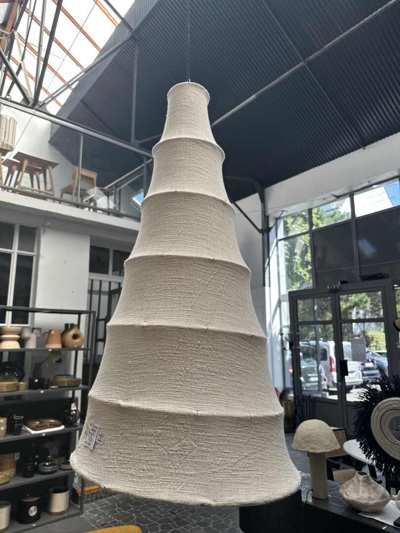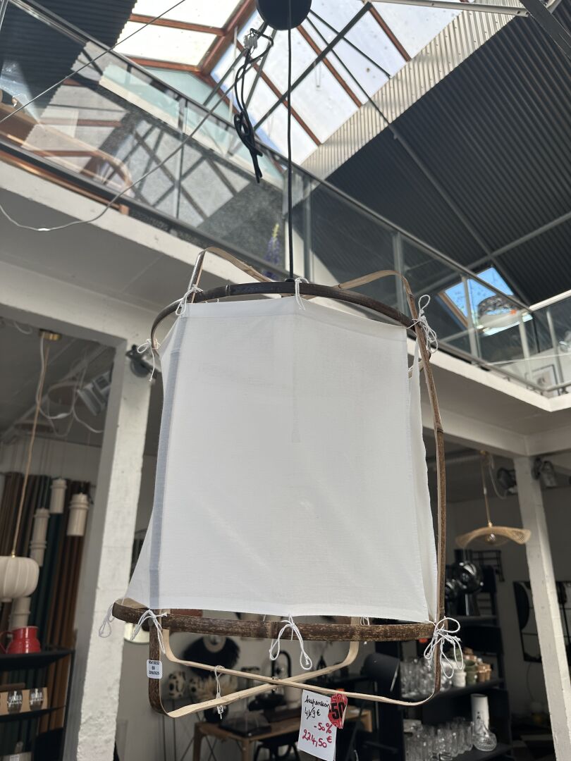 2 suspensions: 1 VINAY tissus blanc et noir diam: 35cm H 50cm et 1 osier 1943; Prix de vente...