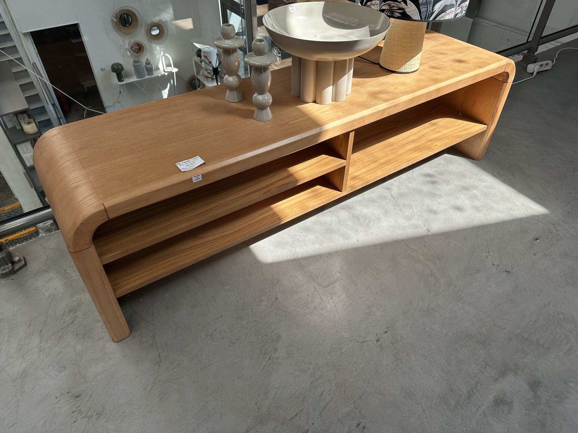 1 meuble TV chêne clair PI, 2 tiroirs, 164X45X53cm, 1 table basse ovale, assortie 4 pieds...
