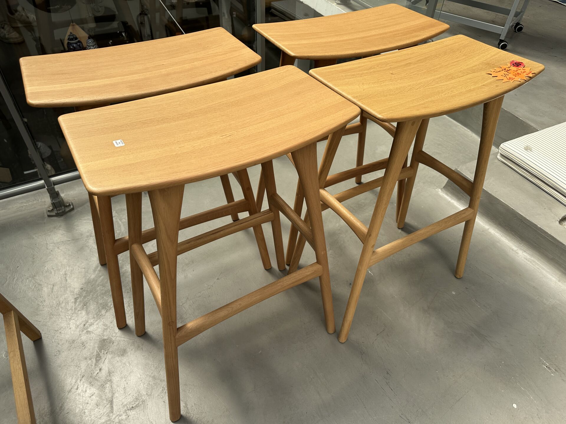 4 tabourets de bar OSSO chêne vernis ; Prix de vente magasin : 770 €