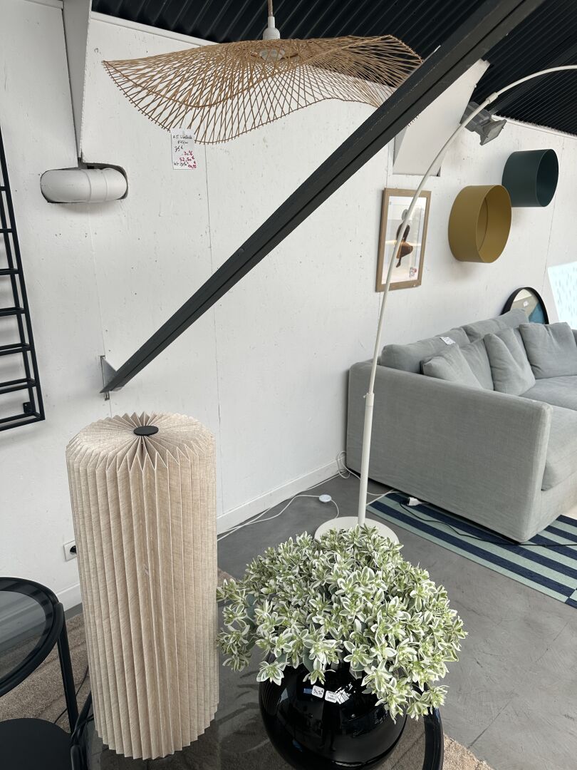 Dans une réserve, sur 1 module, ensemble de décoration dont 7 lampadaires BY BOO et ZUIVER, 3...
