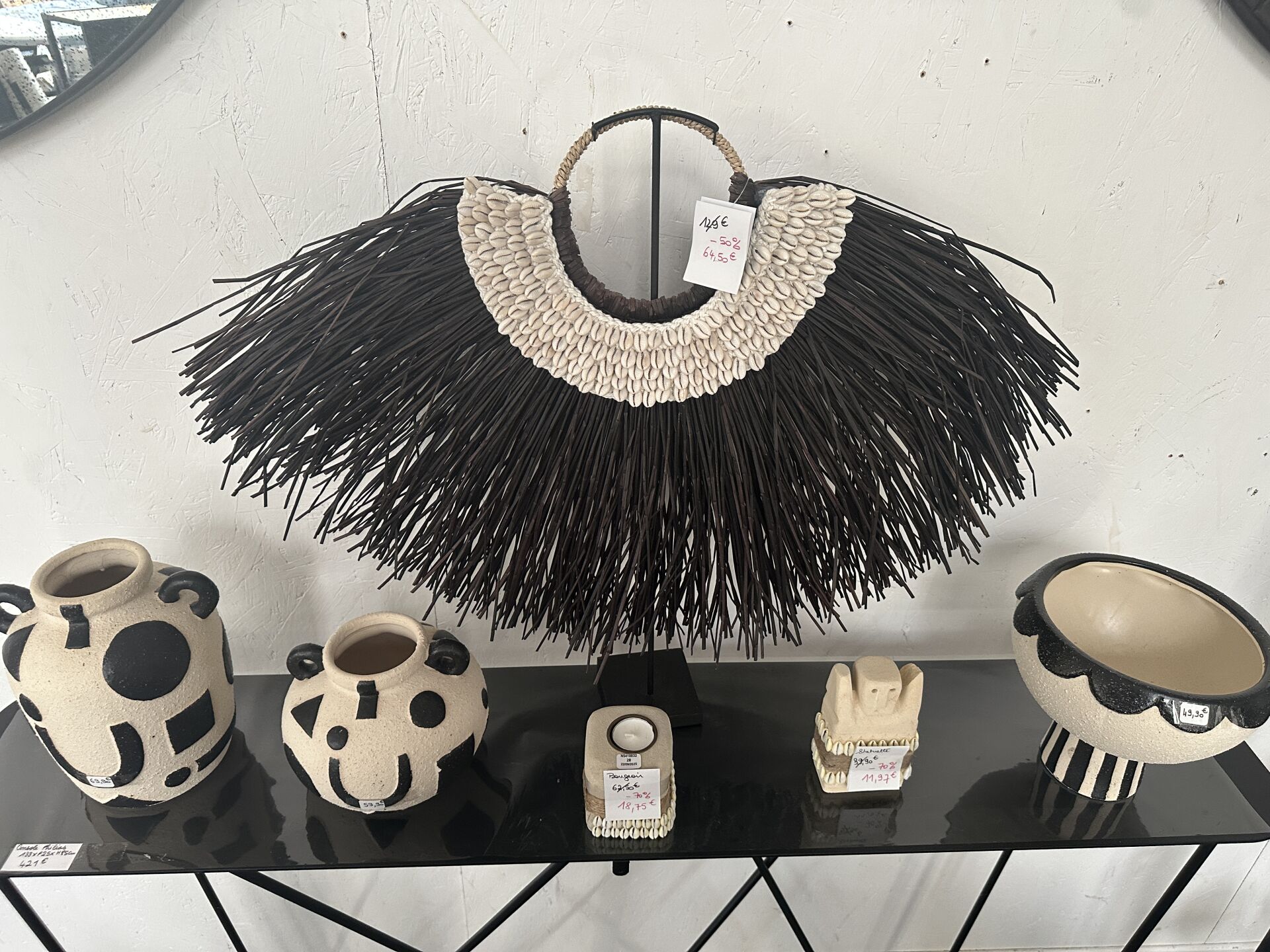Ensemble de décoration dont 3 pots ATHEZZA BOUDOU céramique beige et noir, 1 collier style...