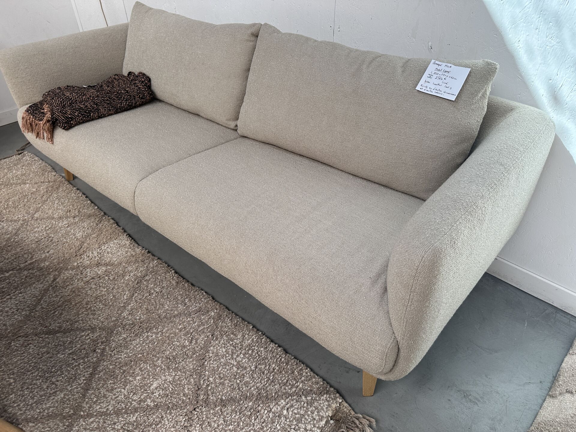 1 tapis IDAHO PAROS laine sable 160×230 cm; Prix de vente magasin : 620 €