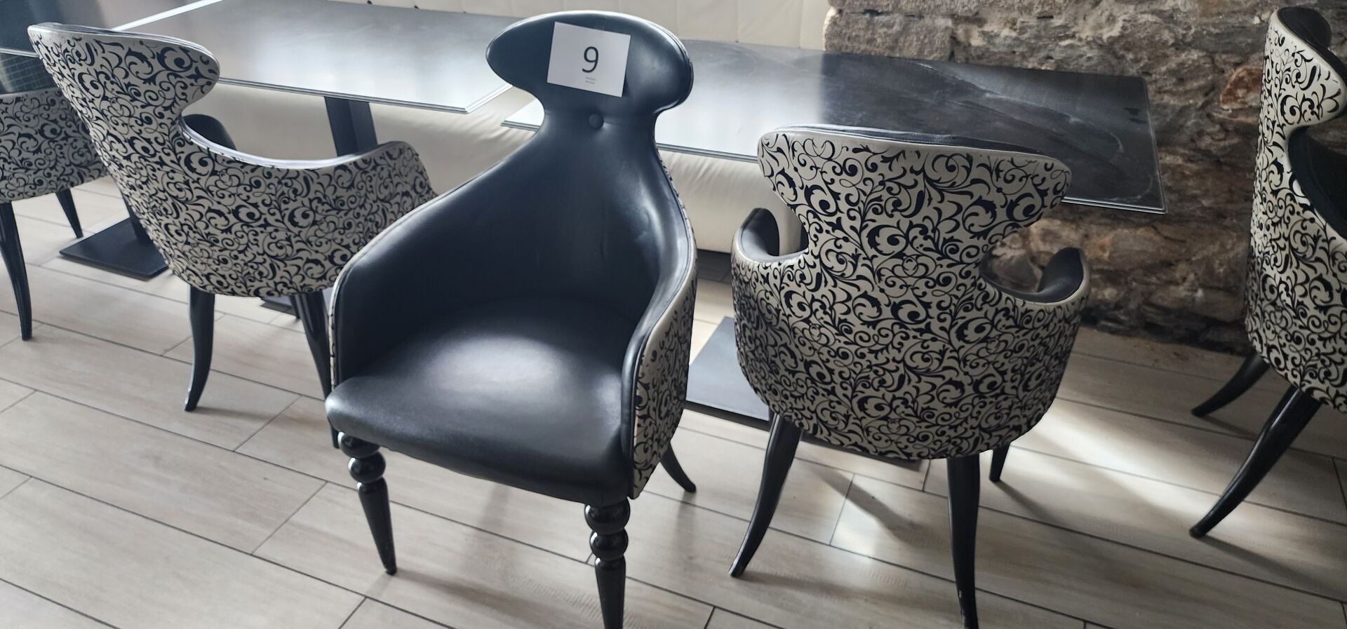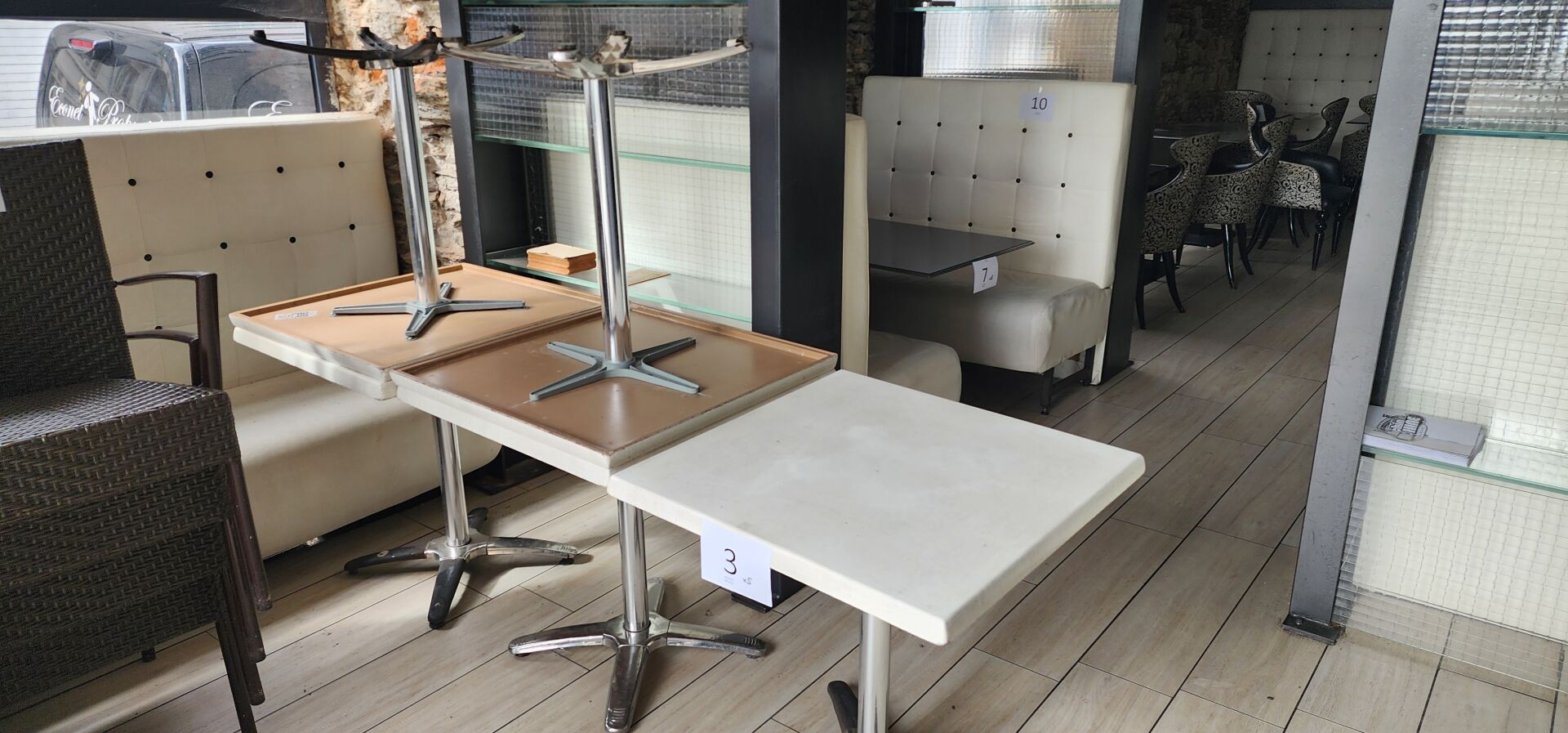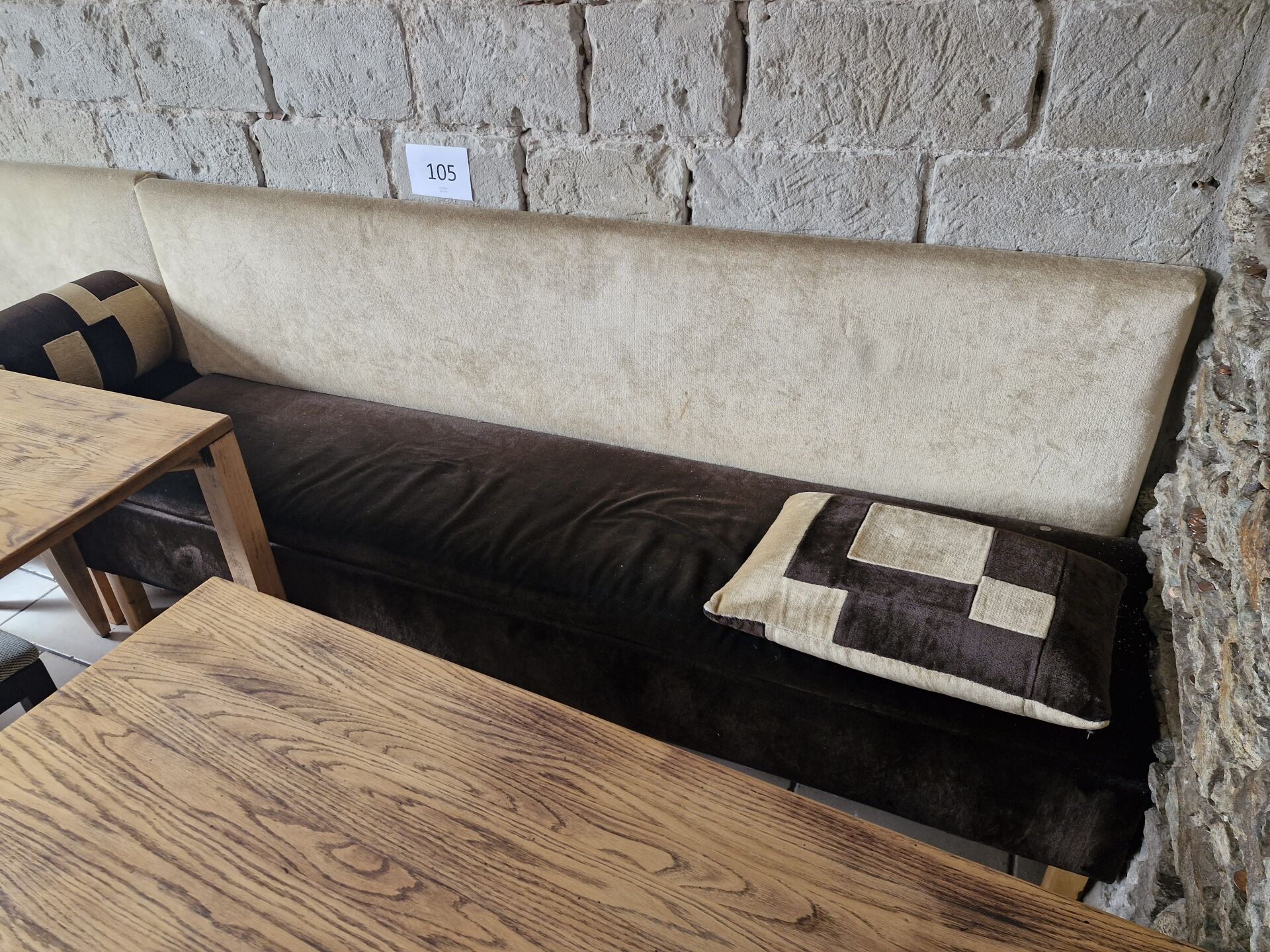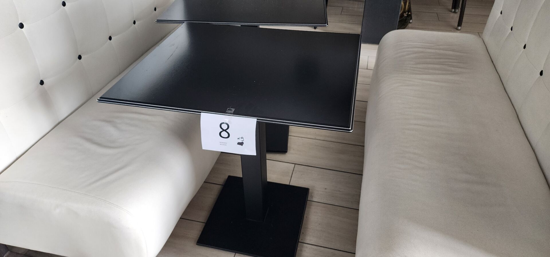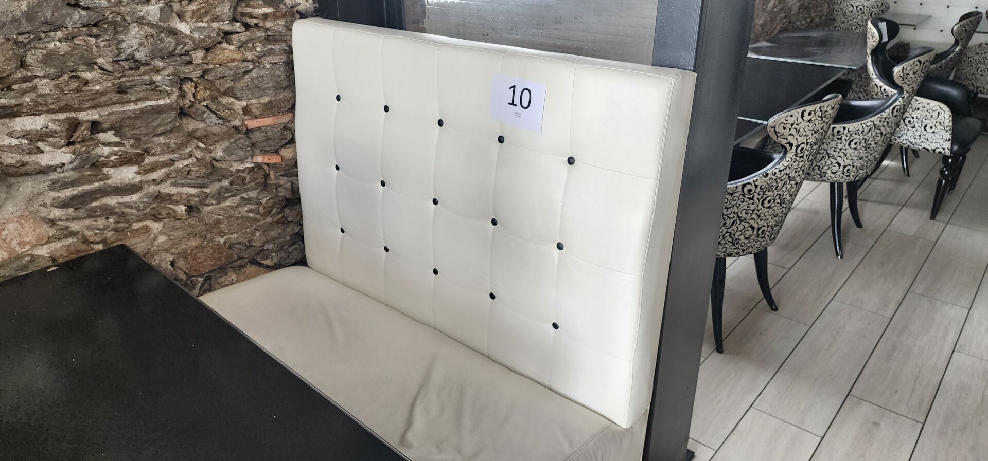 11 banquettes simili cuir blanc capitonné, 308cm x1, 150cm x6, 278cm x1, 330cm x1, 320cm x1 et...