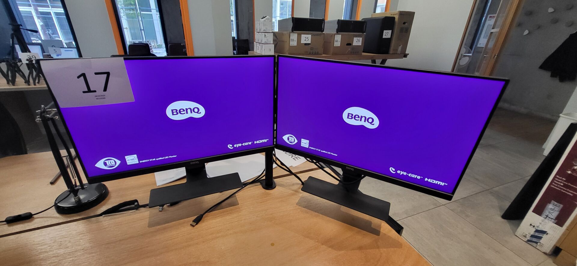 2 écrans BENQ 24″ sur support double articulé