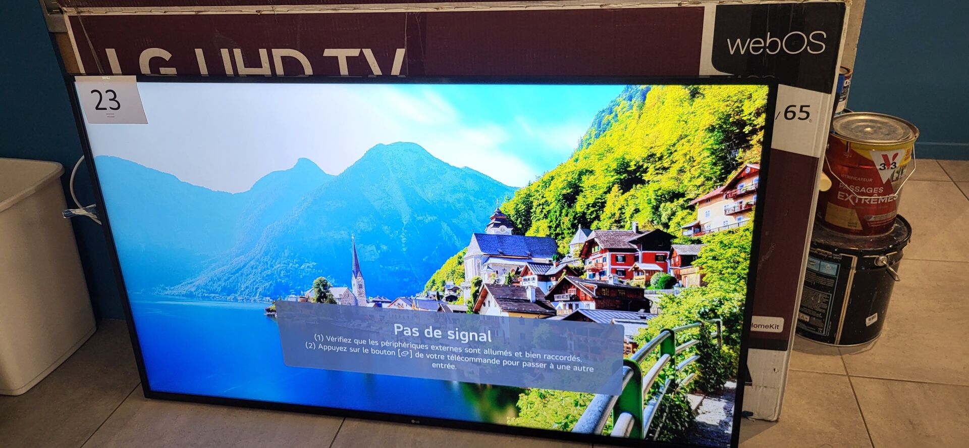 1 écran LG 65″ 4k 164 cm en carton avec stand