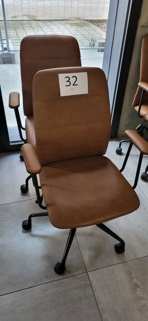 2 fauteuils tournants et roulants similicuir brun