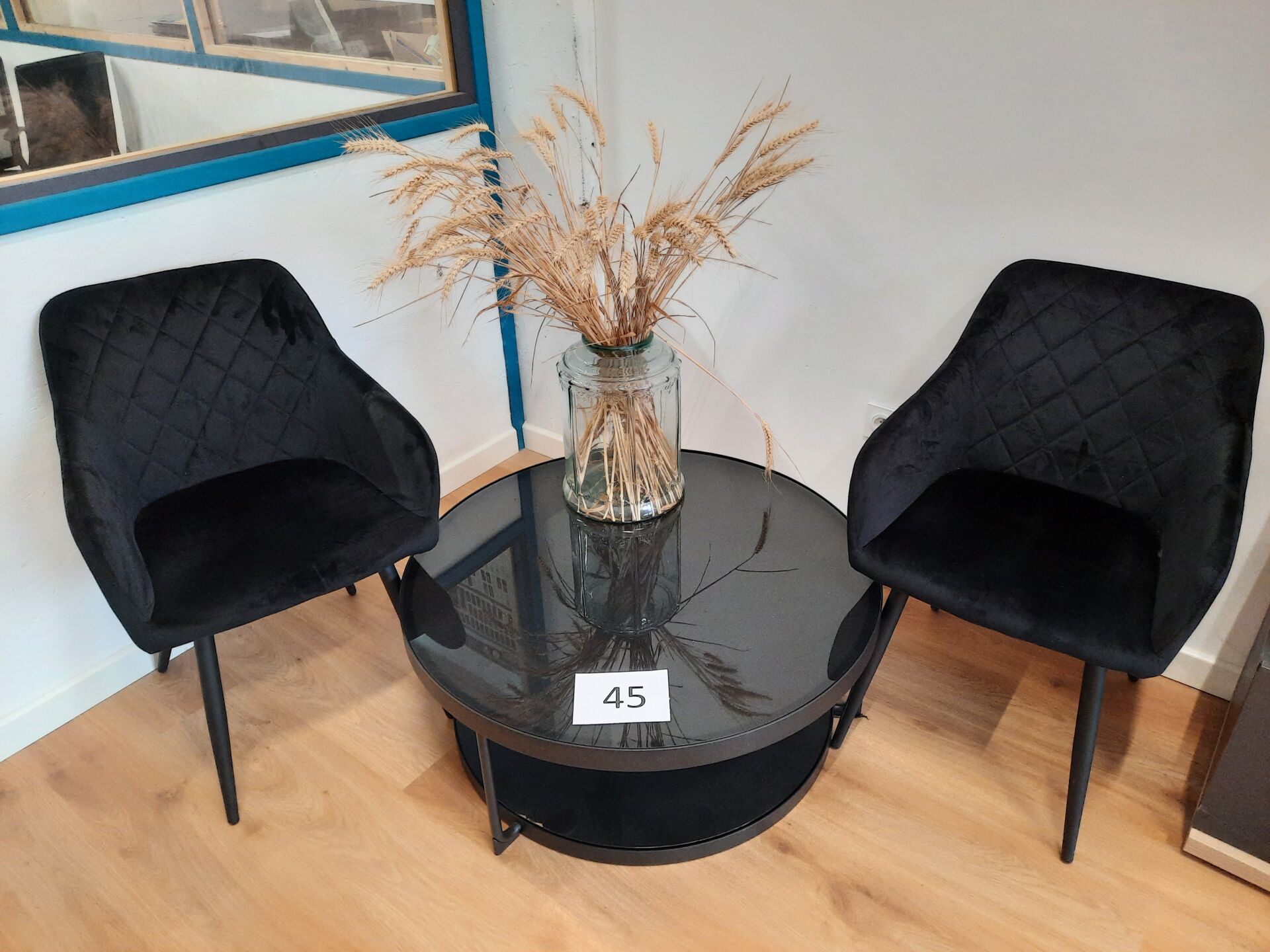 Table basse ronde en métal laqué noir, plateau en verre diam. 88 cm