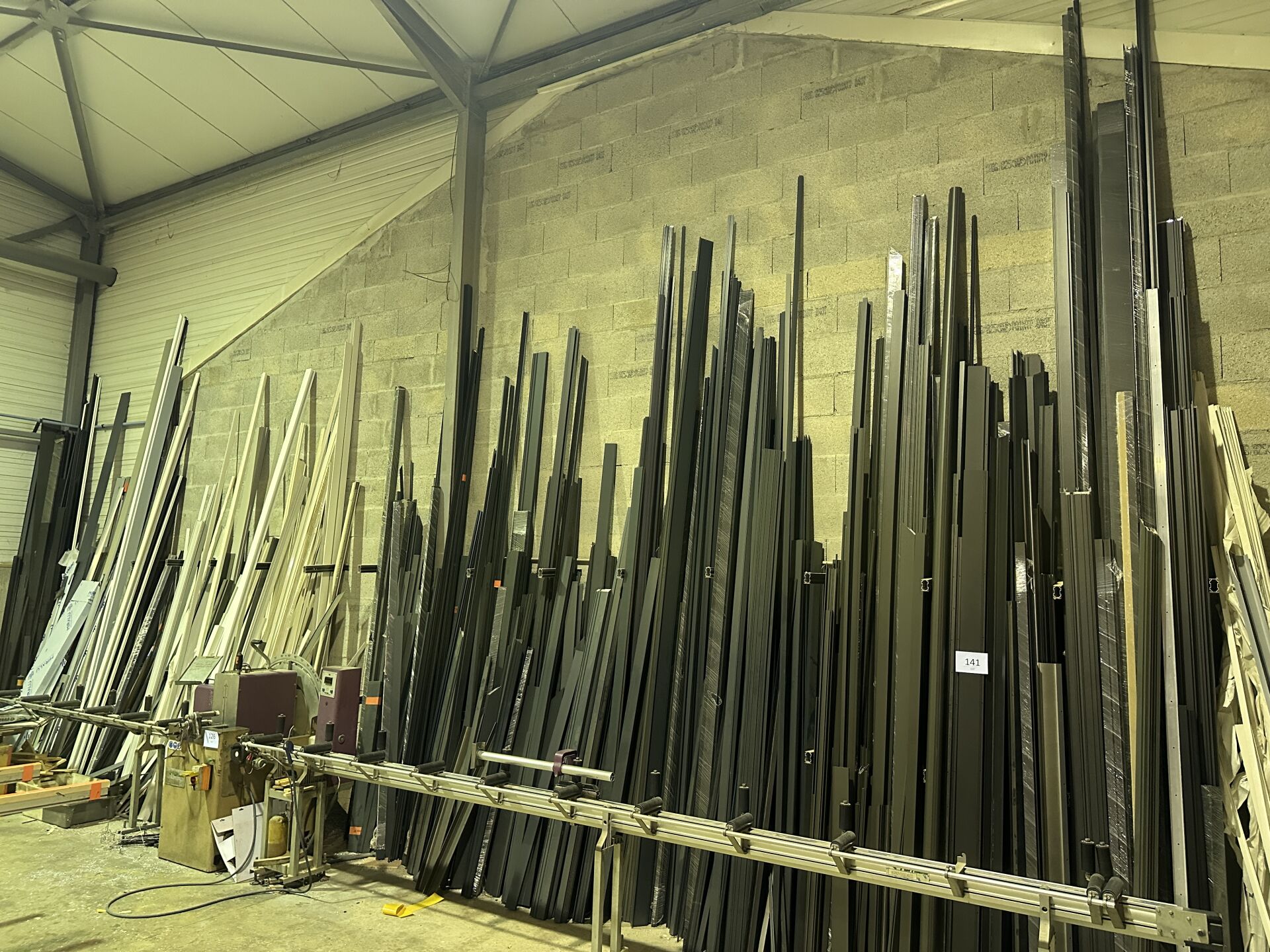 Dans 2 racks Cantilever : 1 stock de profils alu en 6 m, anthracite, gris ou blanc