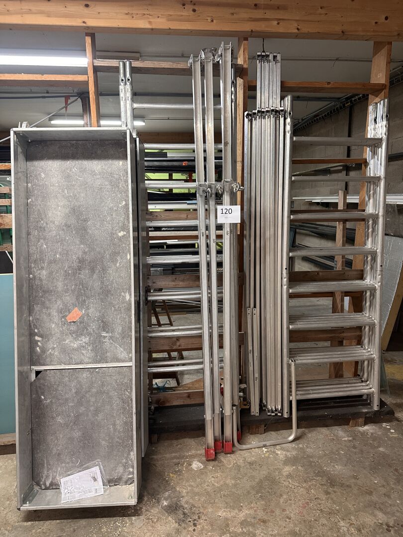1 échafaudage roulant WURTH 70761 composé de 6 échelles de 2 m, 2 échelles d’1 m, 3...