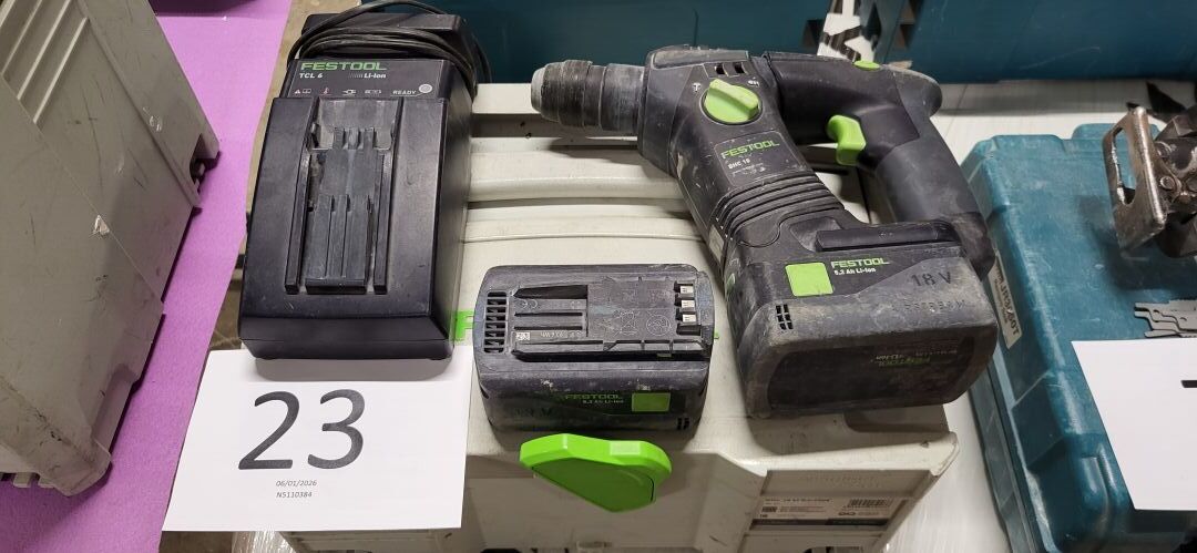 1 perforateur autonome FESTOOL BHC18, avec 1 chargeur et 2 batteries 18V, en coffret