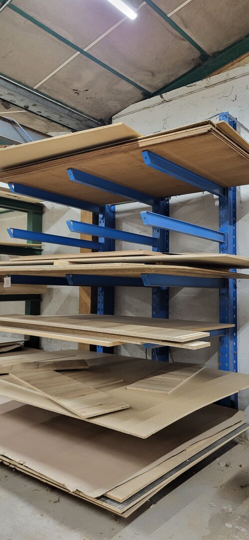 1 rack CANTILEVER métal bleu 3 montants et 15 bras horizontaux 190 x 355 x 150 cm