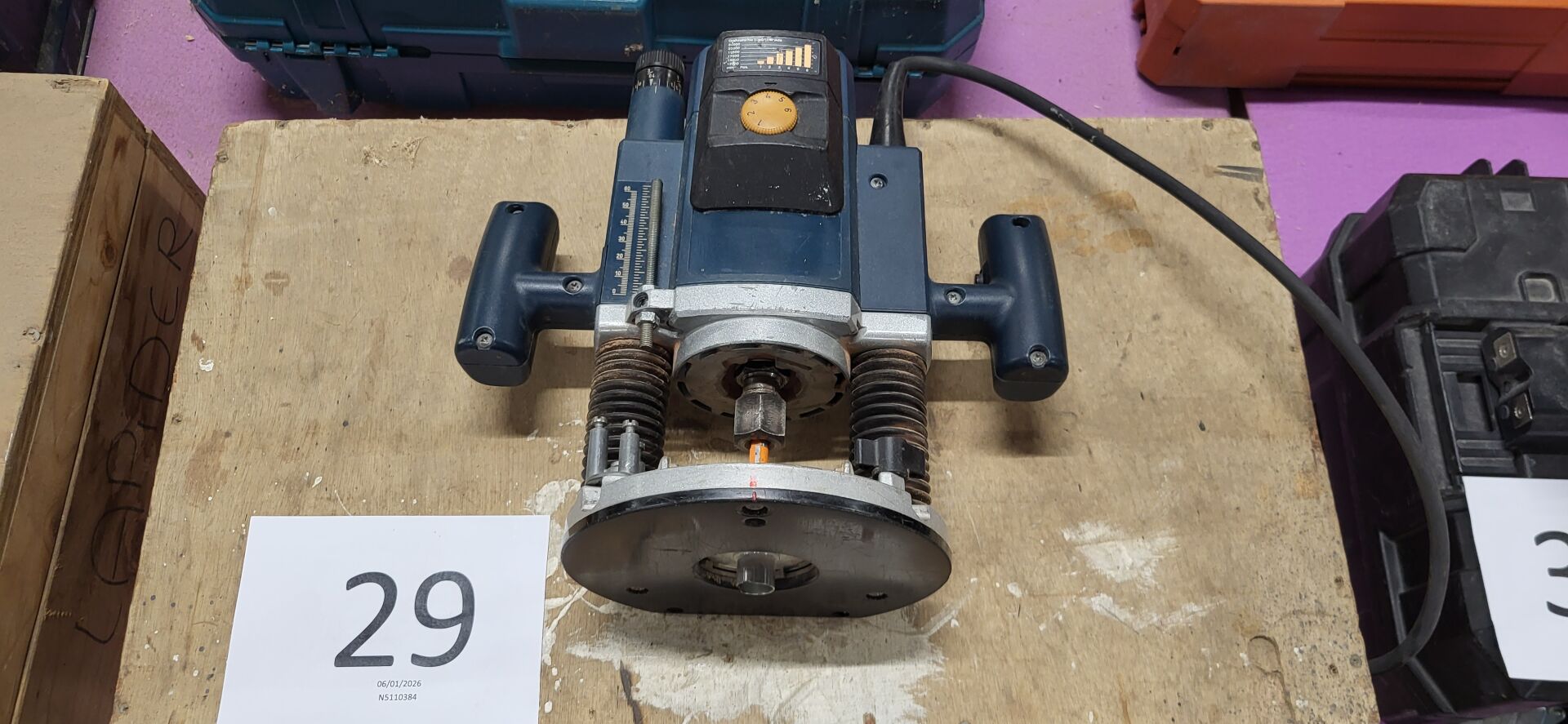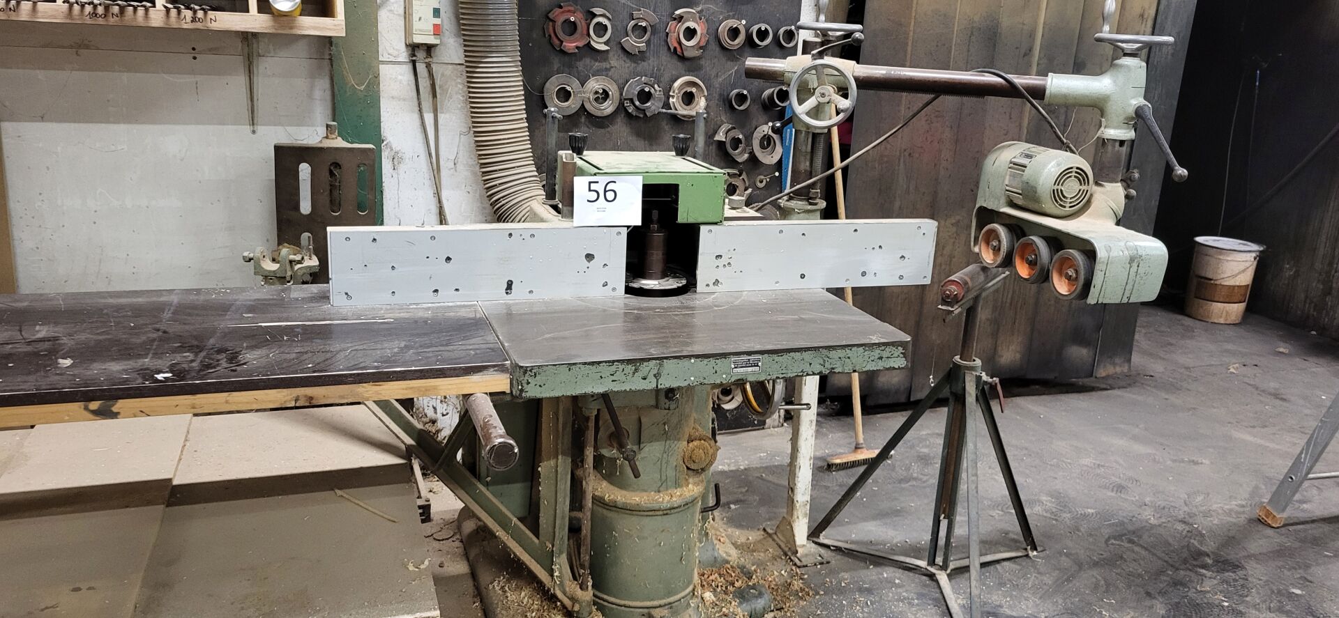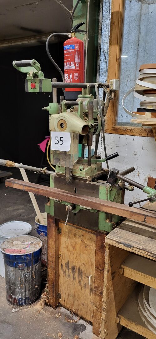 1 toupie à bois RUGE sans plaque apparente, avec entraineur ELU avec accessoires et servante à...