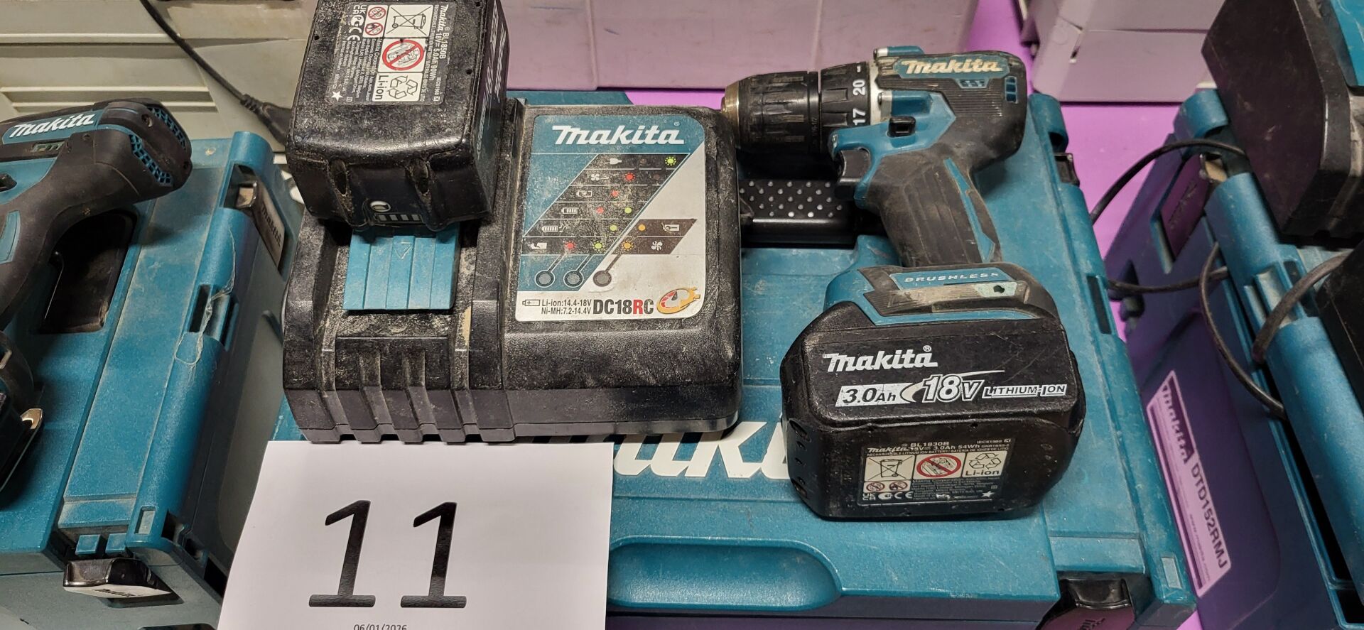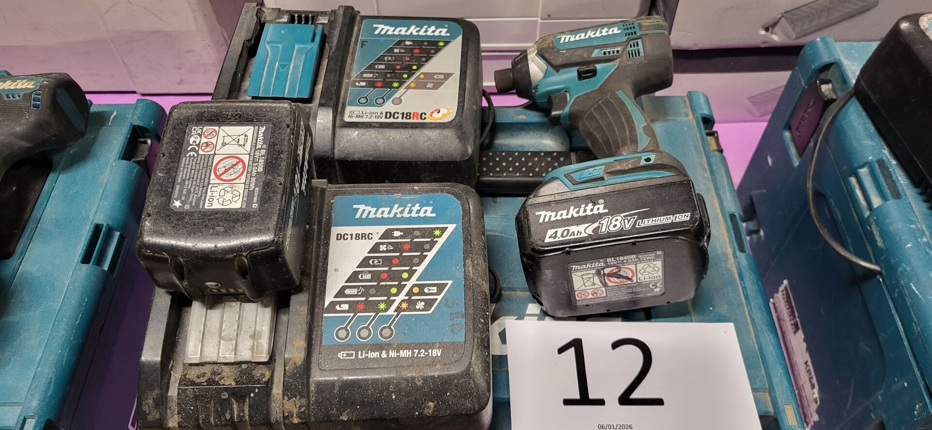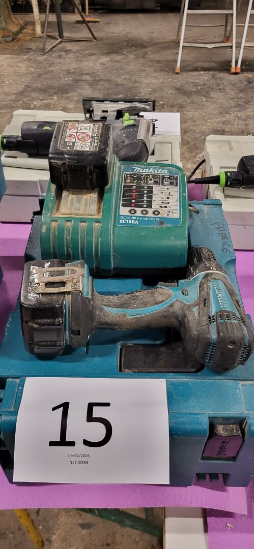 1 visseuse autonome MAKITA (plaque illisible) , 1 chargeur et 2 batteries 18V en coffret