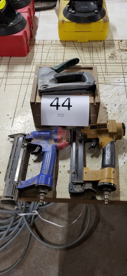 2 agrafeuses pneumatiques dont STANLEY BOSTITCH + 1 agrafeuse manuelle RAPID MS 840