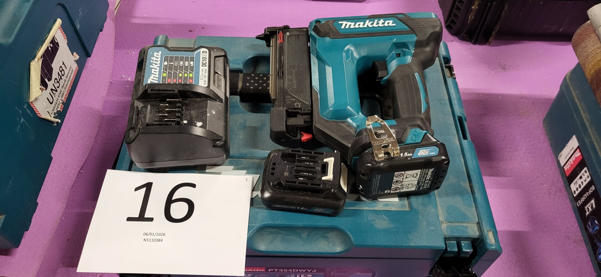 1 cloueur autonome MAKITA PT354D, avec 1 chargeur et 2 batteries de 12V, en coffret de 2021