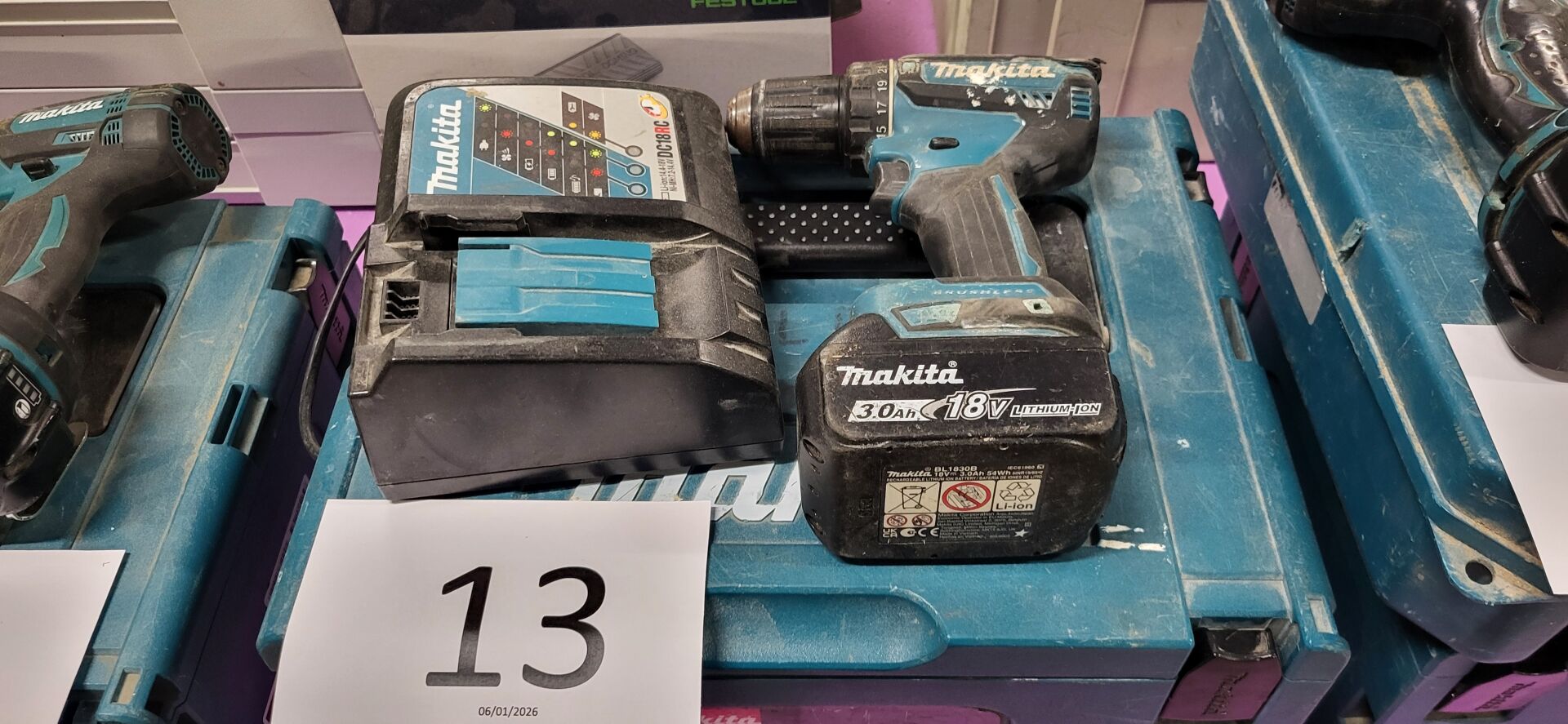 1 perceuse / visseuse autonome MAKITA DDF 482, 1 chargeur et 2 batteries de 14.4 V en coffret