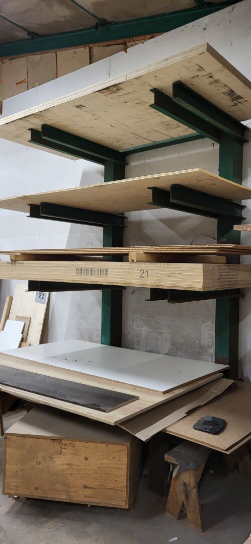 1 rack CANTILEVER métal vert 2 montants et 16 bras horizontaux soudés 160 x 295 x 110 cm