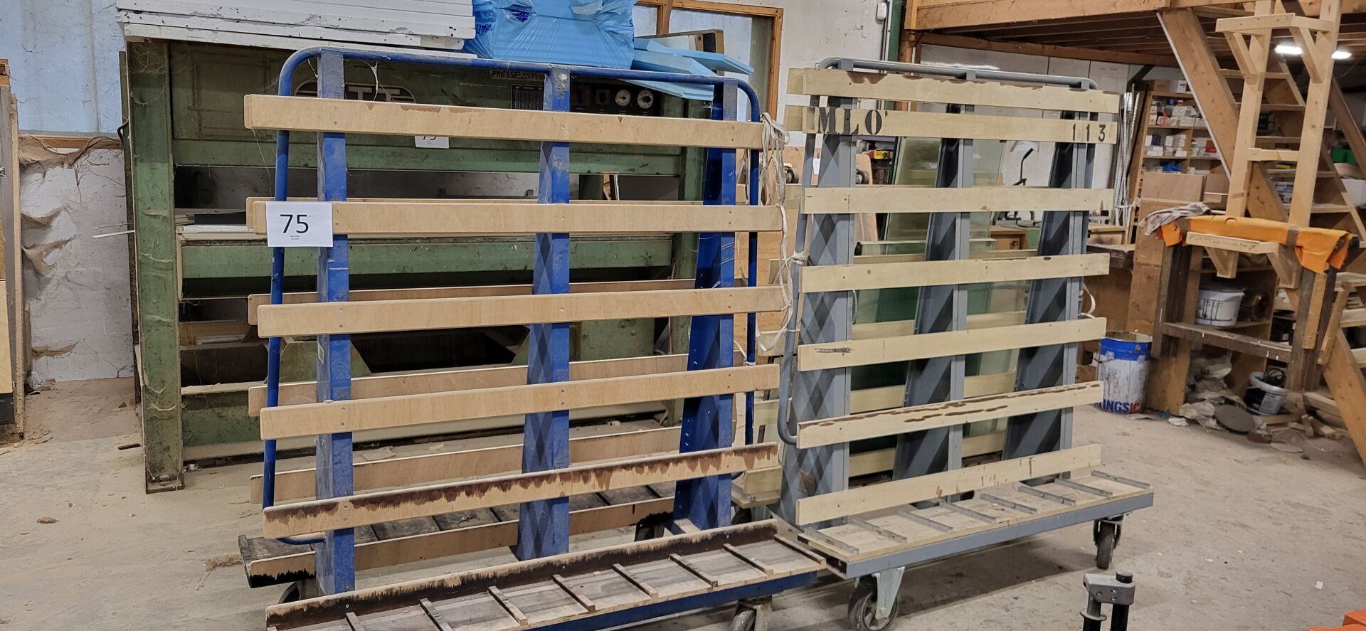 2 chariots verriers métal et bois double face 163 x 82 x 175 cm et 150 x 77 x 182 cm