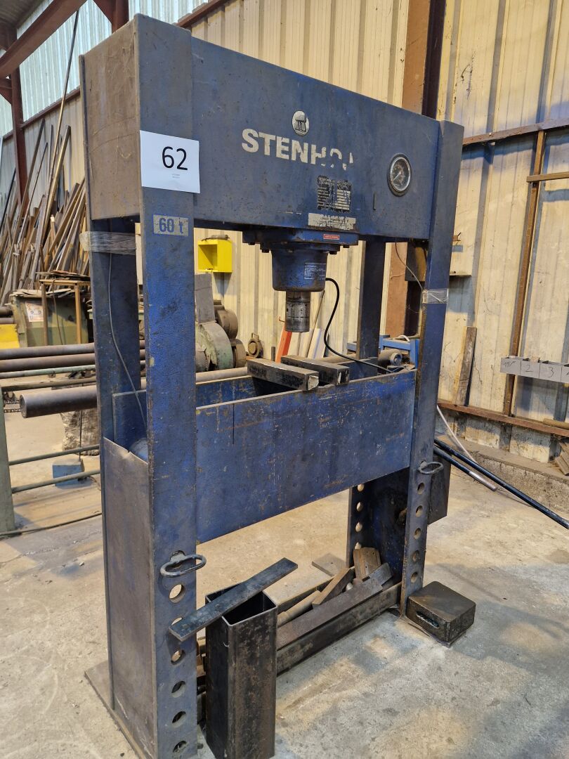 1 presse d’atelier hydraulique STENHOJ 60 tonnes (plaque dégradée, illisible) 127 X 33 X...