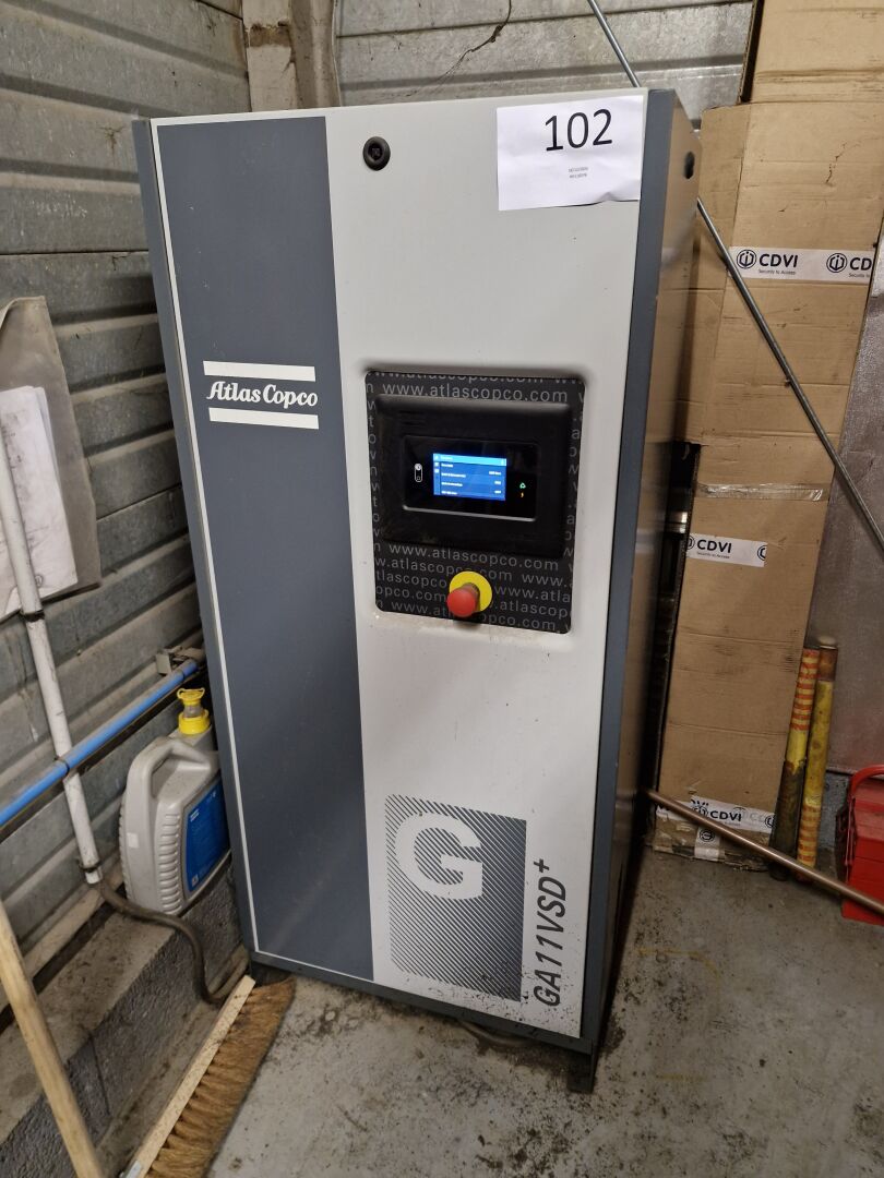 1 compresseur ATLAS COPCO GA 11VSD+, n/s : AP1269376 (2019) avec secteur COMPAIR, 10 985 heures...