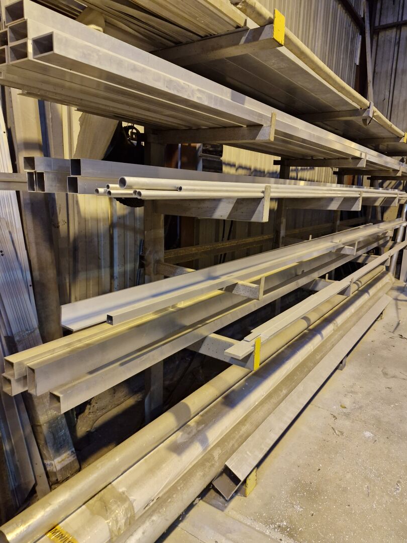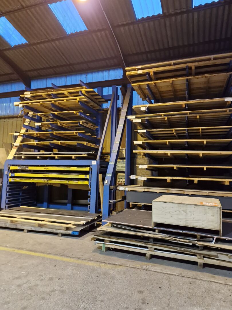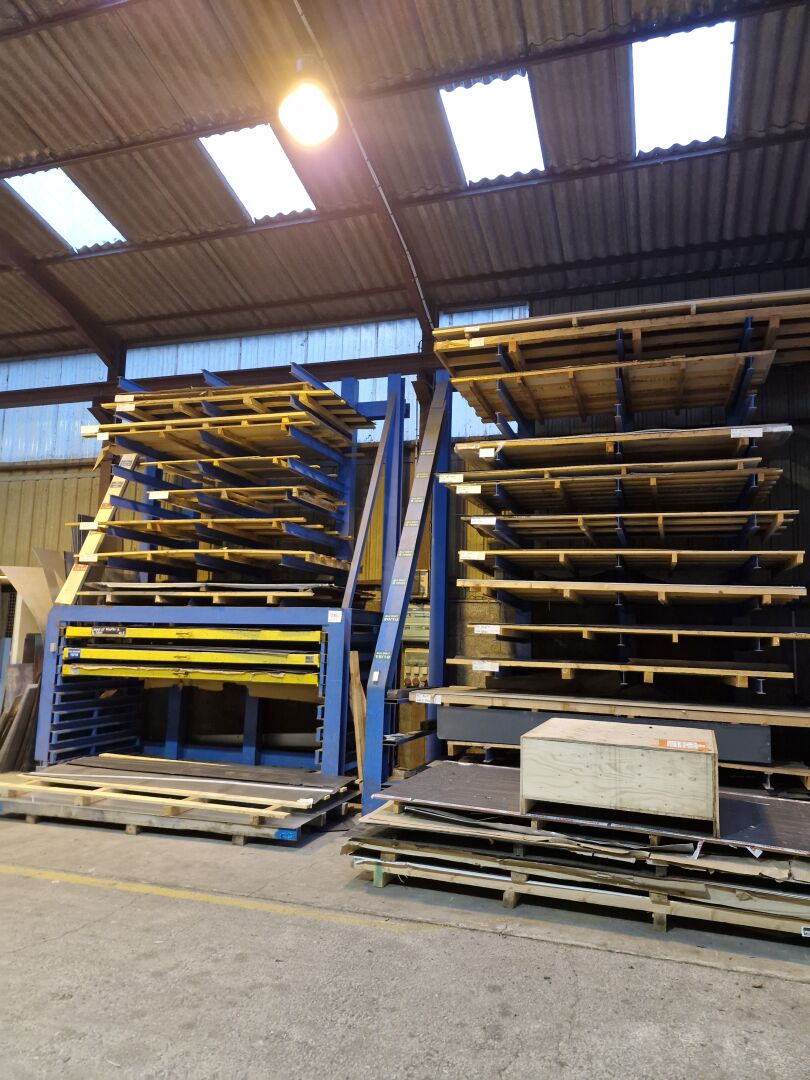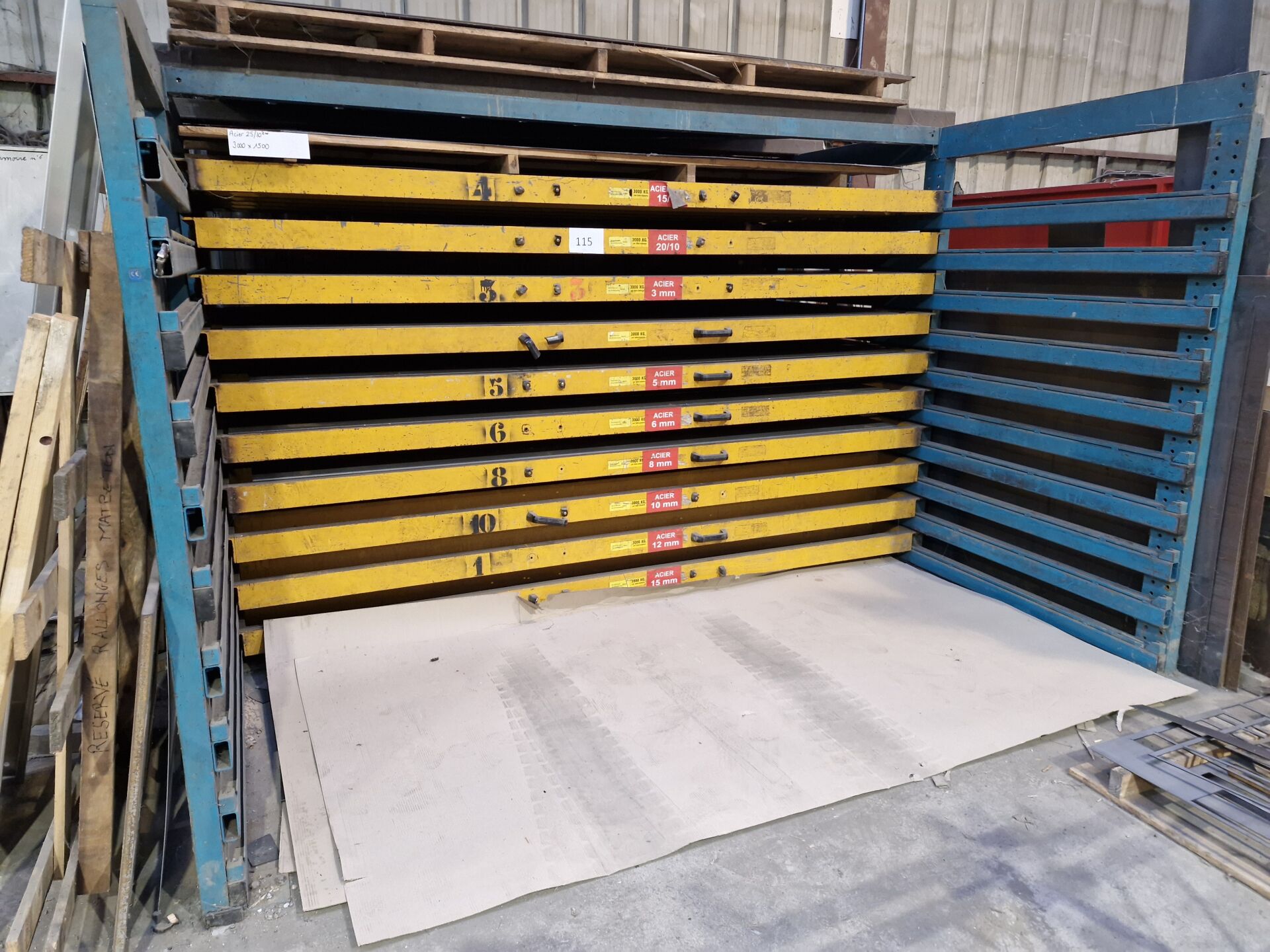 Dans 3 racks Cantilever à tiroirs : 1 ensemble de tôles 1500 x 3000 mm , essentiellement en...