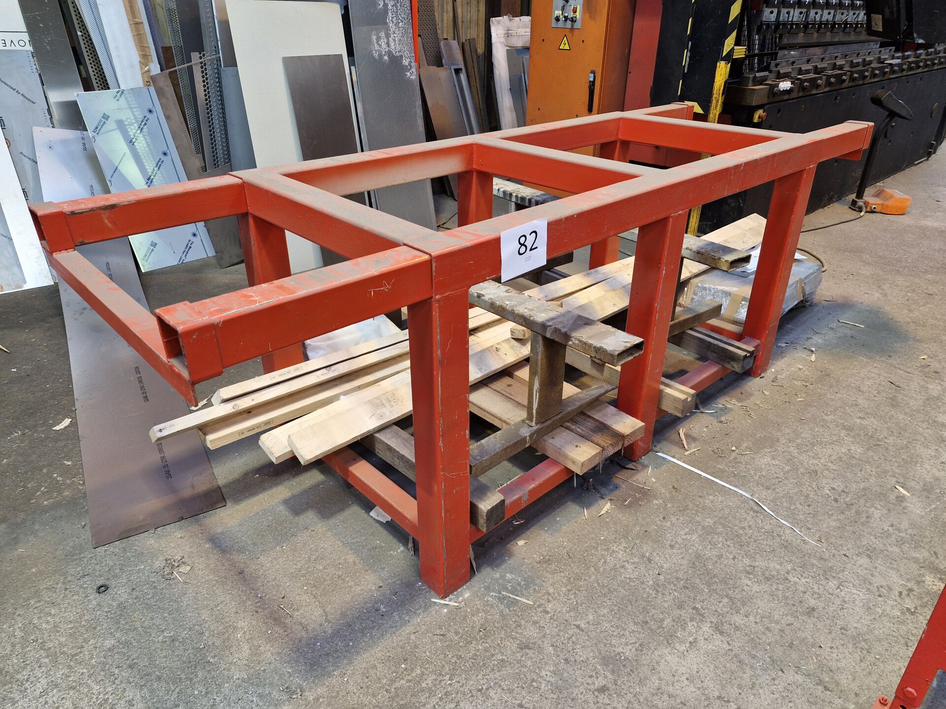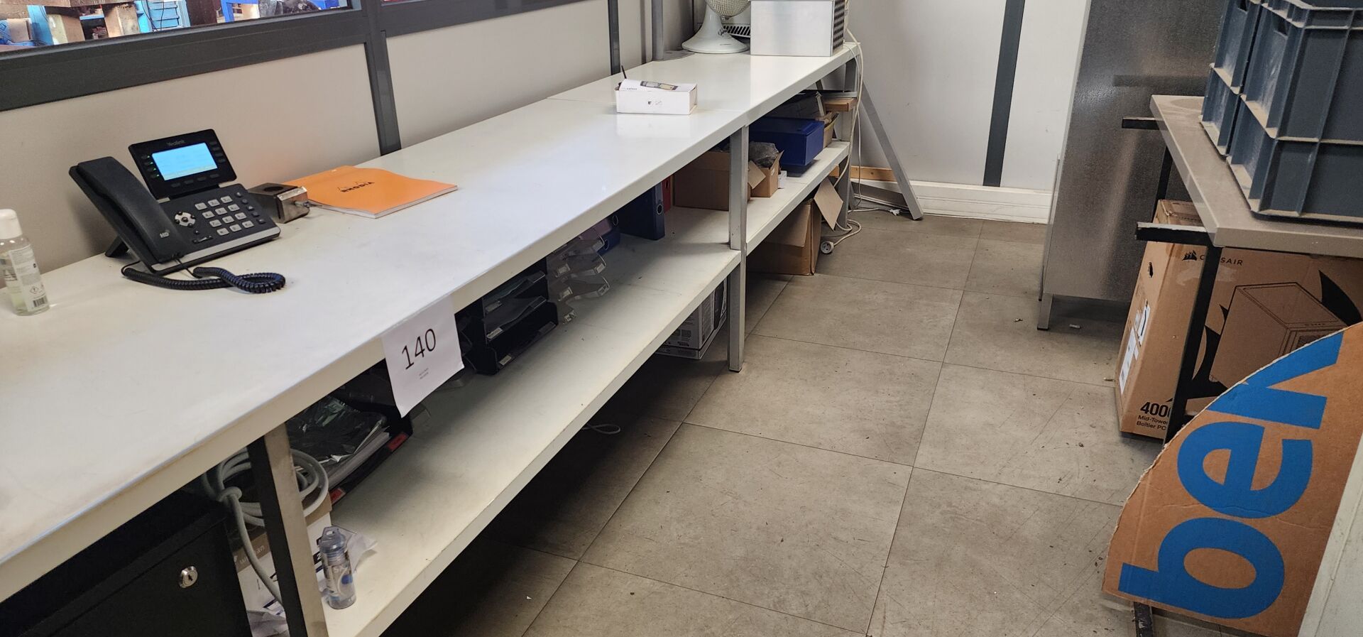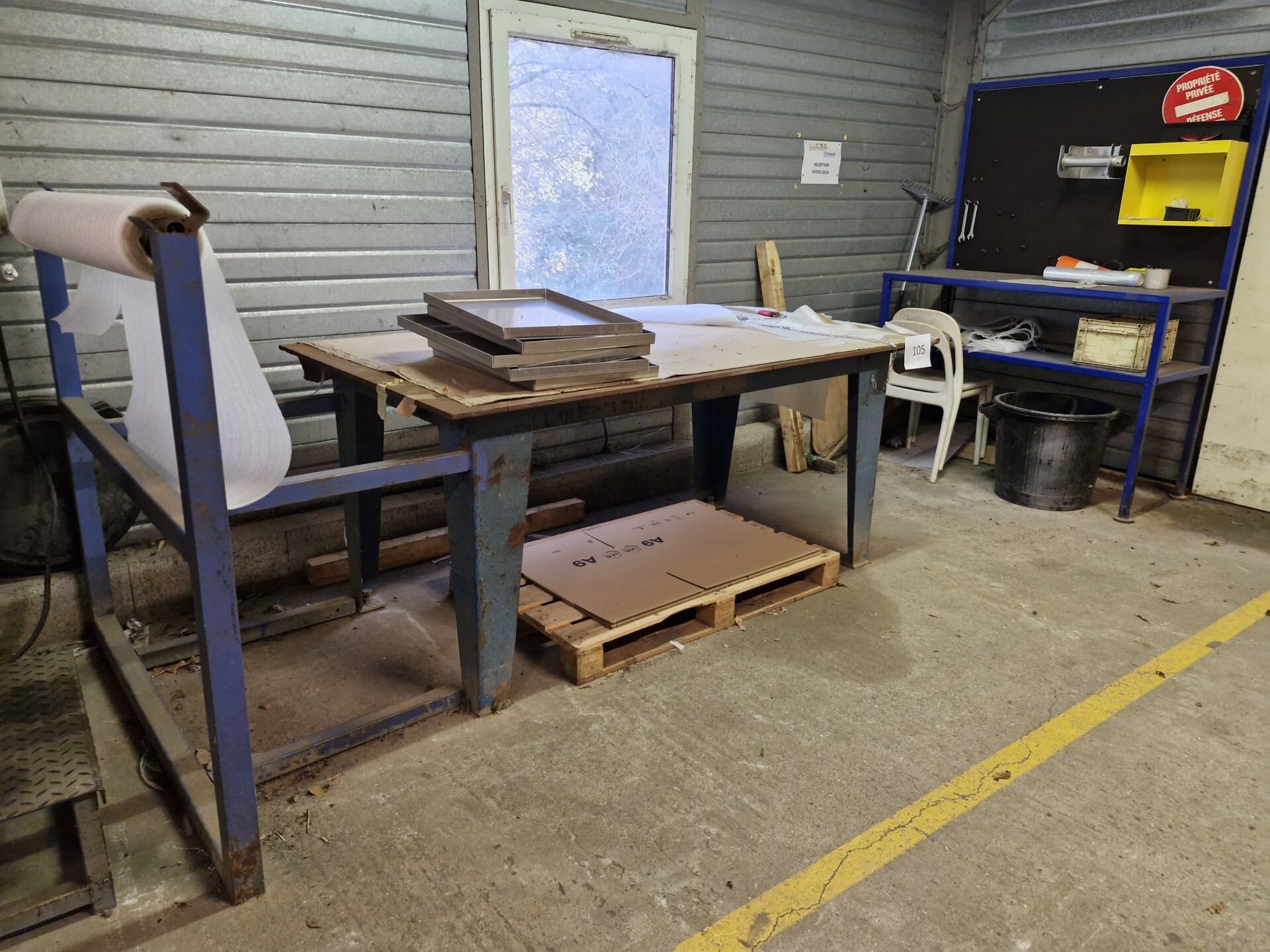 2 tables métalliques fabrication interne, l’une à retour 335 x 115 cm et 140 x 60 cm Adjugé à : €