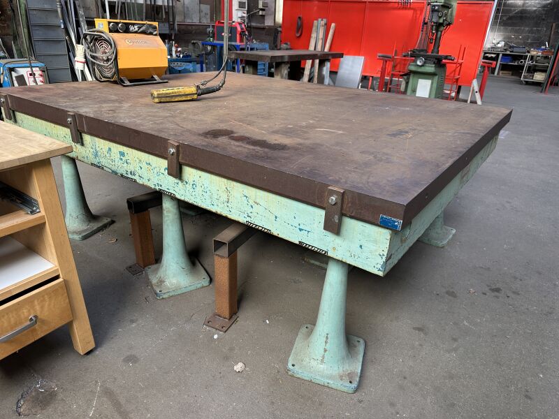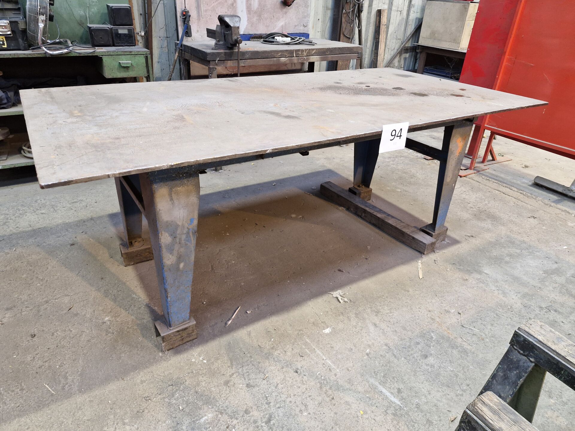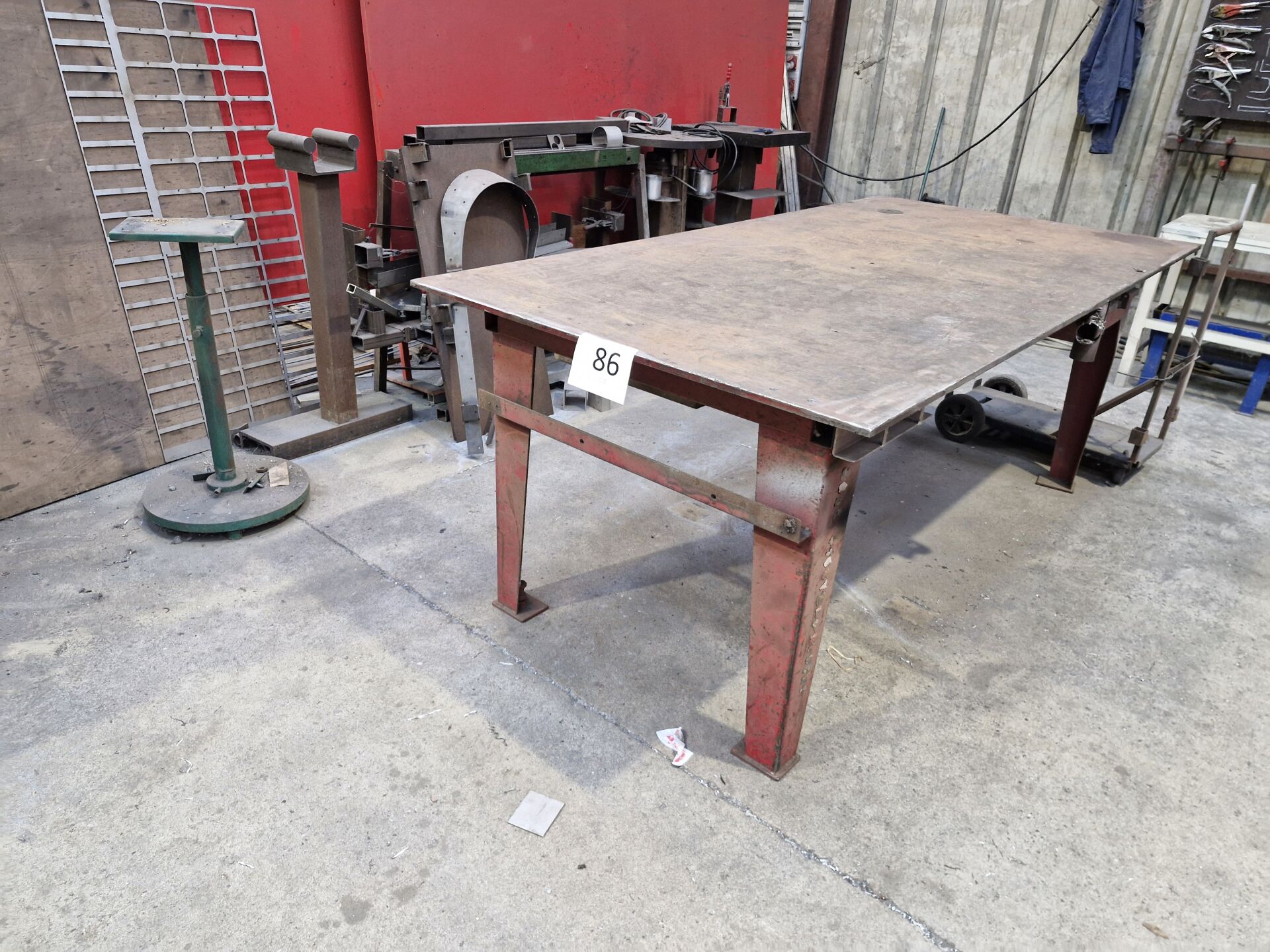 1 table de travail acier mobile environ 2400 x 900 mm, 1 table de travail métal mobile 200 x 70...