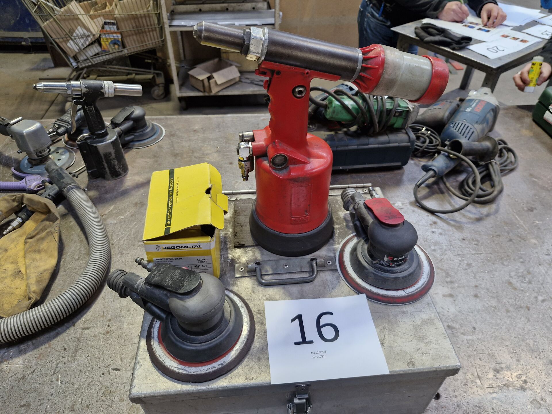 5 outils pneumatiques : 3 ponceuses orbitales, 1 riveteuse RODCRAFT, 1 multifonction