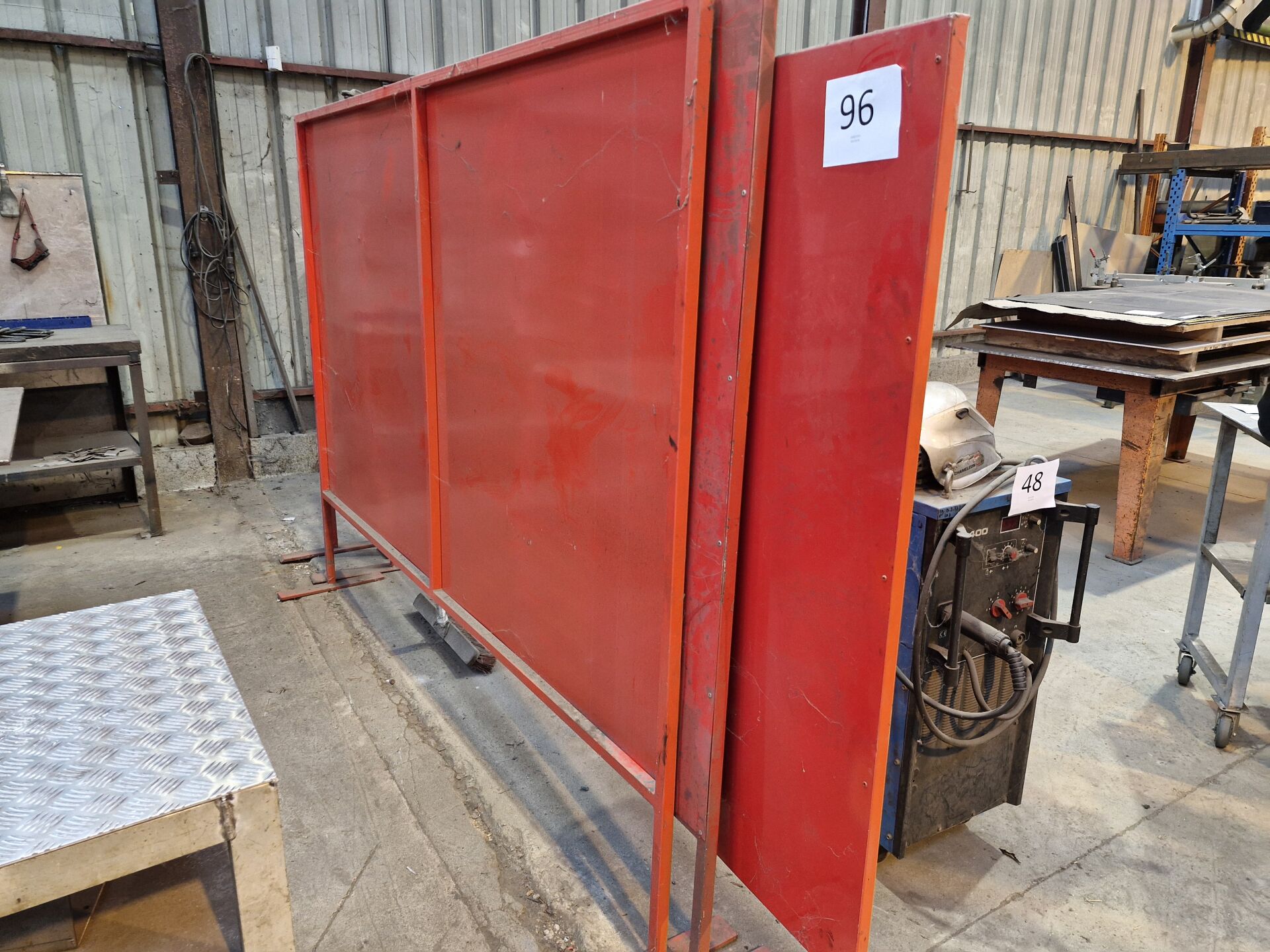2 chemins à rouleaux métal rouge (fabrication interne), environ 4.50 m et 5 m